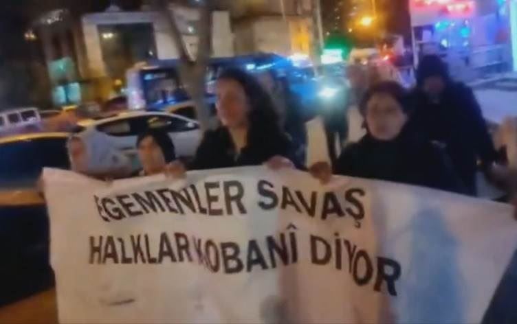 Yürüyüşlerde "Savaşa Hayır" "İktidar savaş halk Kobani diyor" "Kobani dğşmedi, düşmeyecek" dövizleri açıldı.