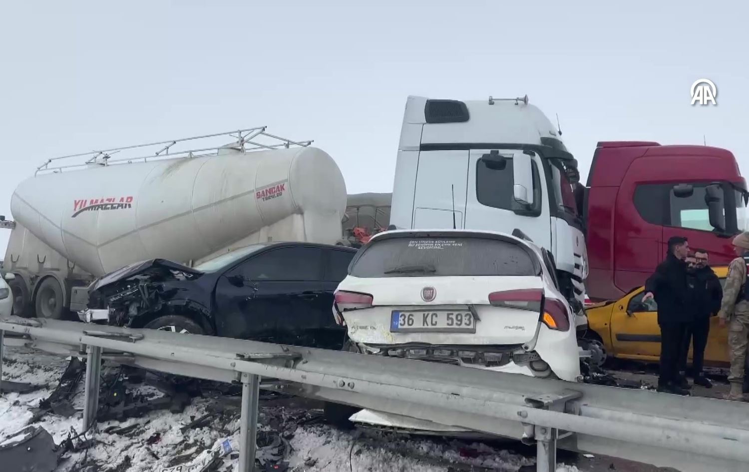 Yoğun sisin etkili olduğu ilçe sınırlarındaki Erzurum-Aşkale kara yolunda, yolcu otobüsü, tır, minibüs, iş makinesi, otomobil ve ticari araçların da karıştığı zincirleme trafik kazası meydana geldi.