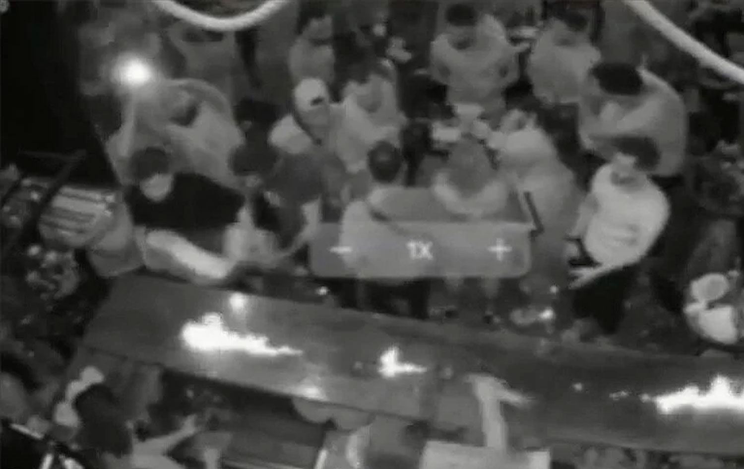 Görüntülerde, eğlence mekanındaki servis masasına dökülen ispirtonun ateşe verilmesi, bir süre sonda yaşanan patlamayla buradaki bazı kişilerin alevlerin arasında kalması yer alıyor.
