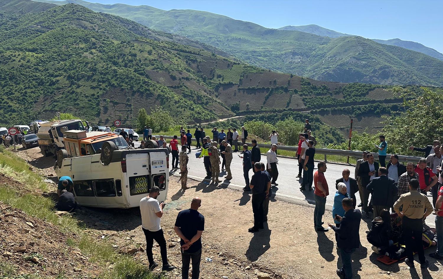 #VİDEO- Hakkari'nin Şemdinli ilçesinde öğrenci taşıyan minibüs devrildi