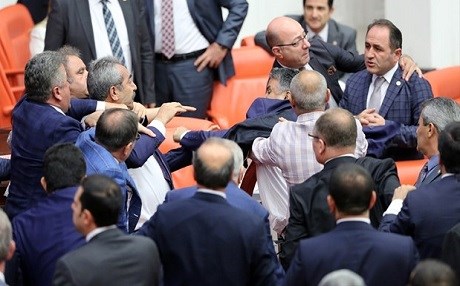 AK Parti ile HDP'li milletvekilleri yumruk yumruğa kavga etti. CHP'li milletvekillerinin araya girmesiyle kavganın büyümesi engellendi.