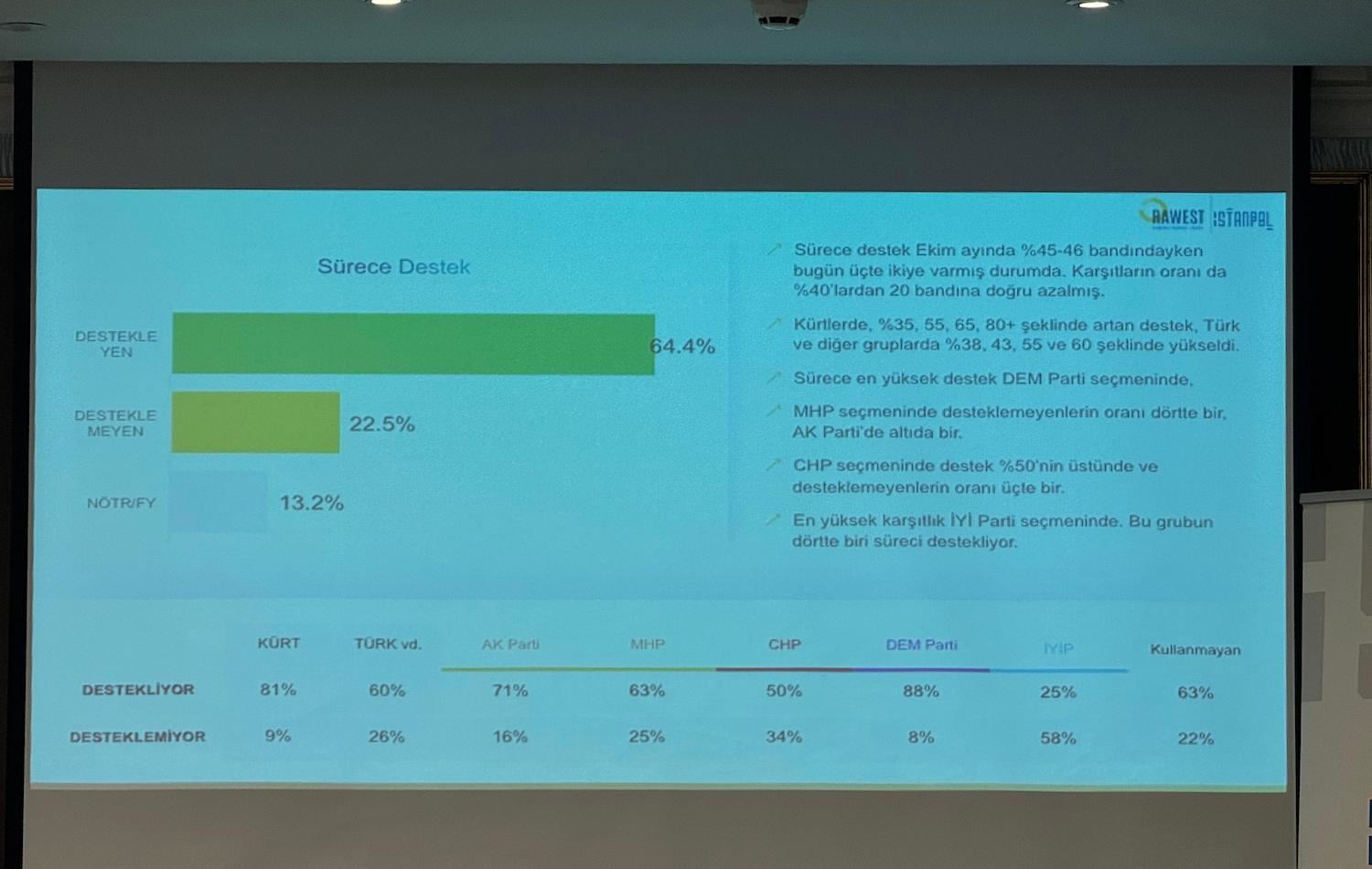 Kürtler arasında destek yüzde 80’i aşarken, Türkler ve diğer gruplarda da ciddi bir artış var. DEM Parti seçmeni süreci en çok destekleyen grup olurken, CHP seçmeninin yarısı süreci destekliyor, yüzde 34’ü ise karşı çıkıyor.