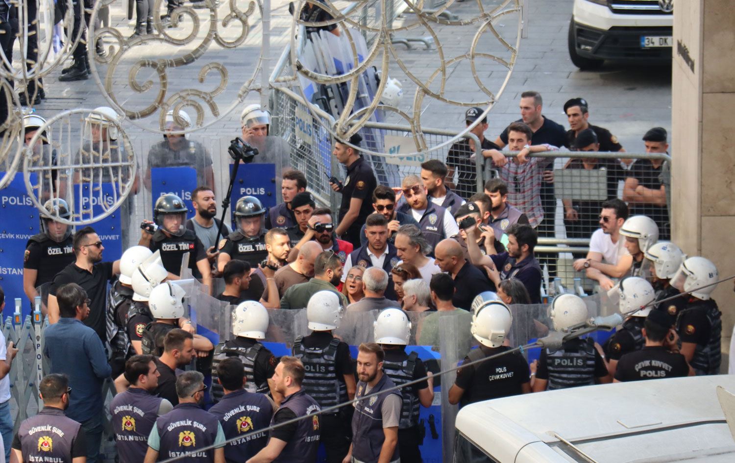 Açıklama yapmak isteyen grup, polis tarafından abluka altına alındı.