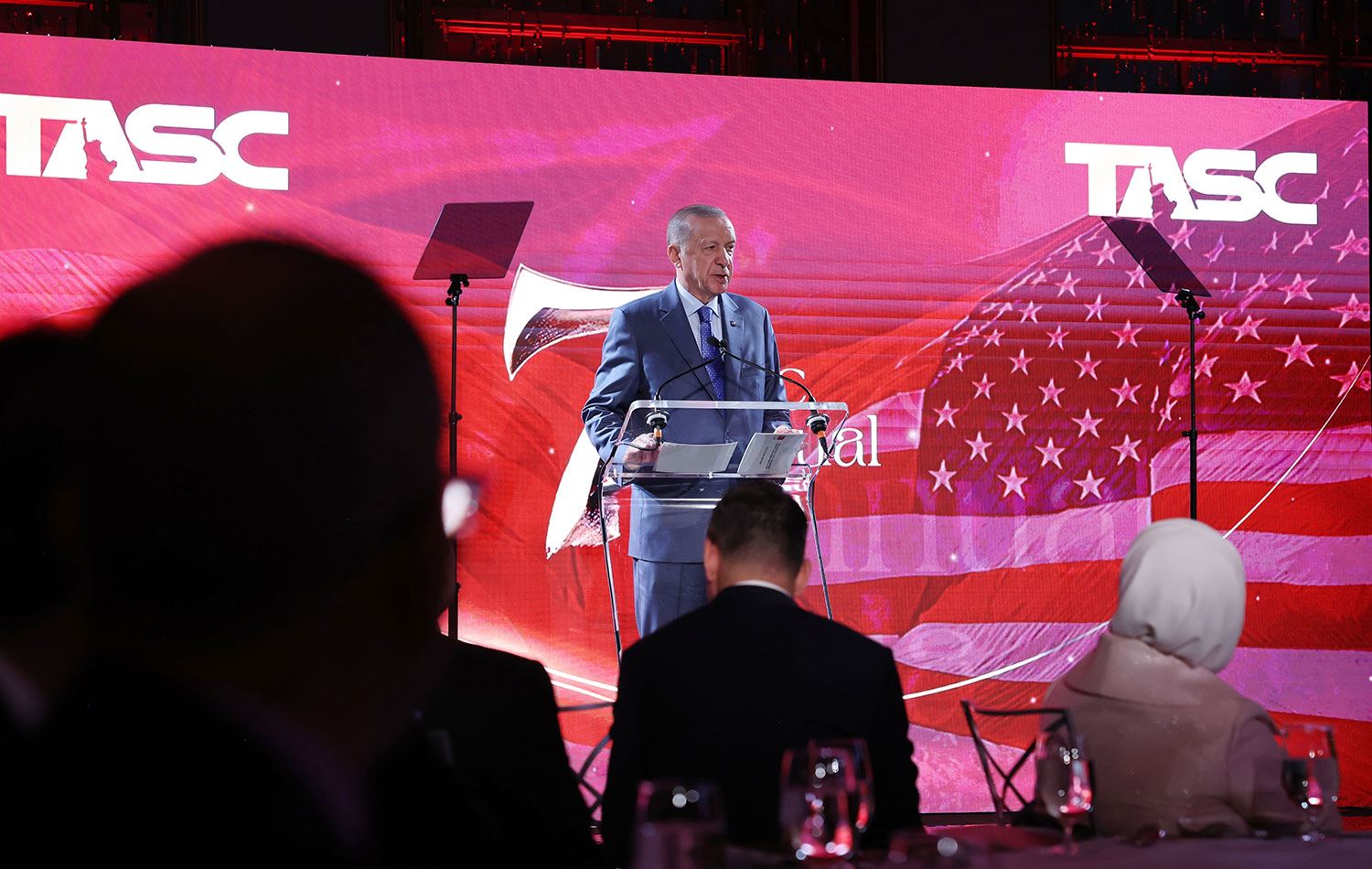 Türkiye Cumhurbaşkanı Erdoğan, New York'ta Türk-Amerikan Ulusal Yönlendirme Komitesince (TASC) düzenlenen akşam yemeğine katıldı. Cumhurbaşkanı Erdoğan, programda konuşma yaptı. / Foto: AA