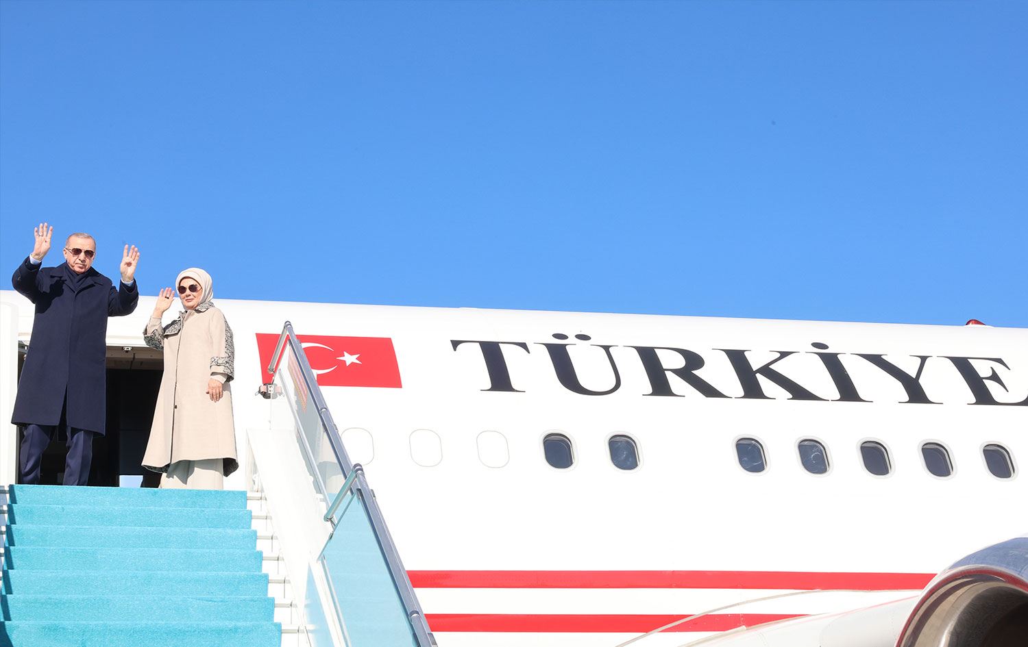Erdoğan ile eşi Emine Erdoğan’a, Dışişleri Bakanı Hakan Fidan, Enerji ve Tabii Kaynaklar Bakanı Alparslan Bayraktar, Ticaret Bakanı Ömer Bolat, Cumhurbaşkanlığı İletişim Başkanı Fahrettin Altun, Milli İstihbarat Teşkilatı (MİT) Başkanı İbrahim Kalın, Cumhurbaşkanı Dış Politika ve Güvenlik Başdanışmanı Akif Çağatay Kılıç ile AK Parti Genel Başkan Yardımcısı ve Parti Sözcüsü Ömer Çelik eşlik etti.