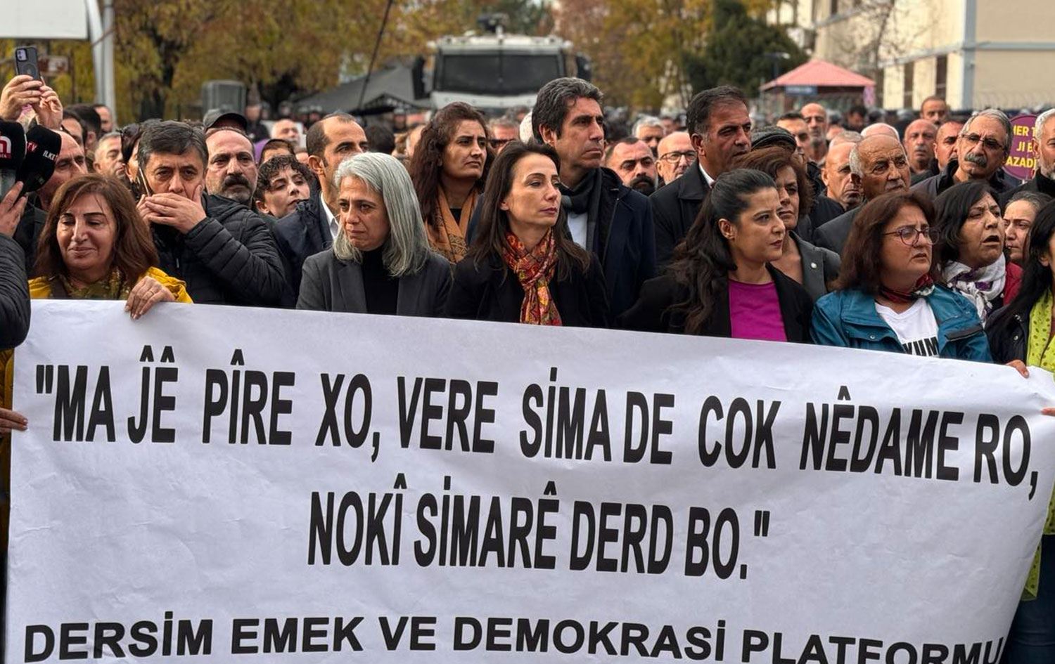 DEM Parti Eş Genel Başkanı Tülay Hatimoğulları, Dersim Belediyesi Eşbaşkanı Cevdet Konak, Demokratik Bölgeler Partisi Eş Genel Başkanı Çiğdem Kılıçgün Uçar, Sebahat Tuncel, Ezilenlerin Sosyalist Partisi (ESP) Eş Genel Başkanı Murat Çepni ve çok sayıda kişi DEM Parti il binası önünden Seyit Rıza Meydanı’na doğru yürüyüşe geçti.