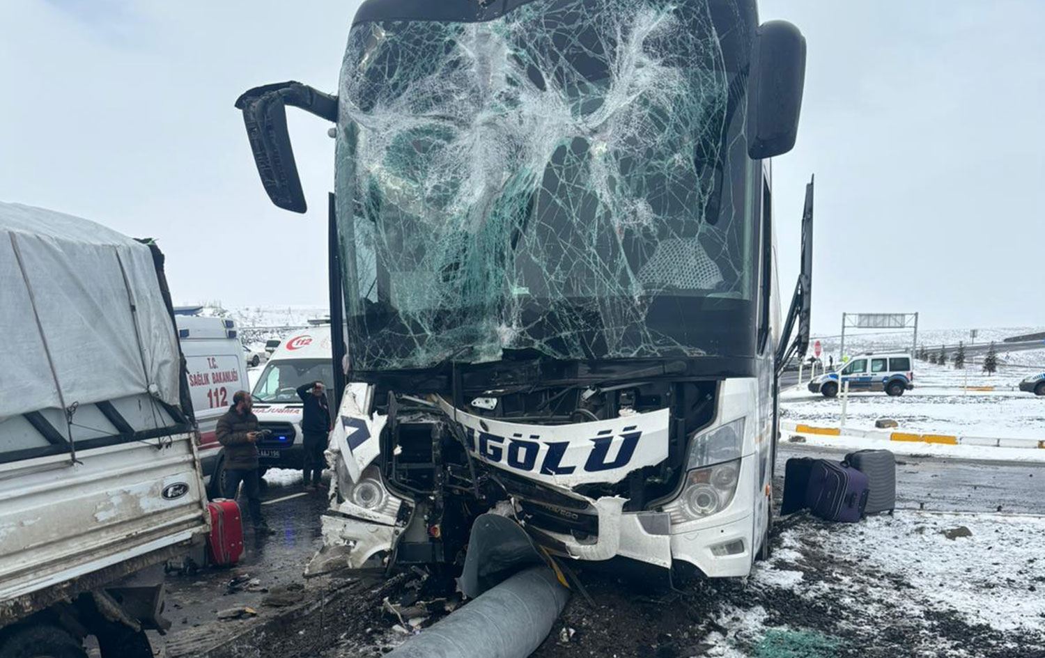 Ş.A'nın kullandığı 34 GLA 664 plakalı yolcu otobüsü ile Ağrı-Van kara yolunun Tutak ilçesi Suvar Kavşağı mevkisinde aynı istikamette giden M.Ç'nin kullandığı 27 ANB 092 plakalı kamyonetin karıştığı kaza sonrası otobüs, refüjdeki yön levhası direğine çarpıp durdu.
