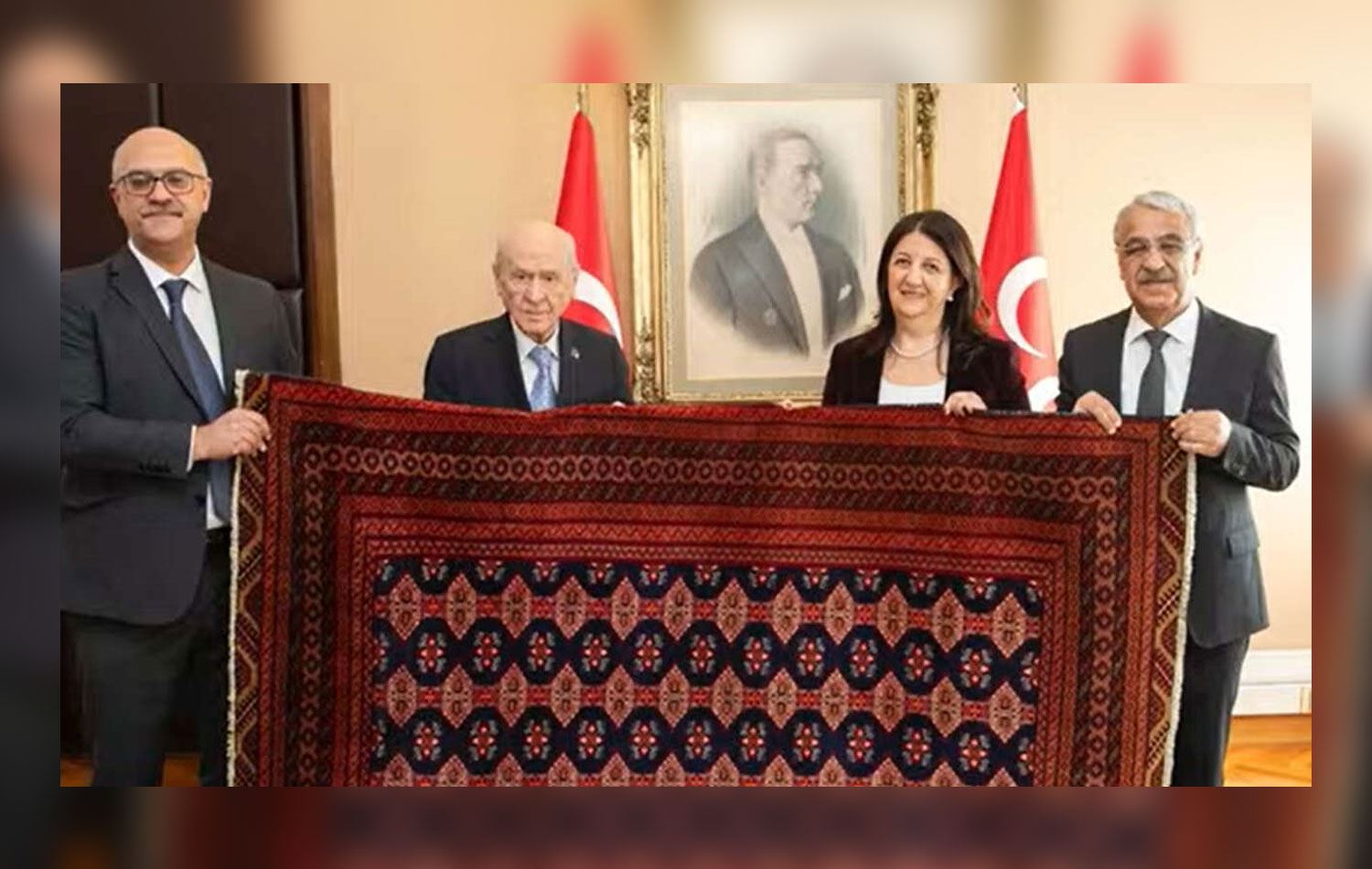 Bahçeli, 12 Aralık 2025 tarihinde DEM Parti heyetinin kendisine gerçekleştirdiği ziyarette, Abdullah Öcalan tarafından Urfa’da özel olarak dokutturulan bir kilimin hediye edildiğini açıkladı. Hediyeyi memnuniyetle kabul ettiğini belirten Bahçeli, şunları söyledi: