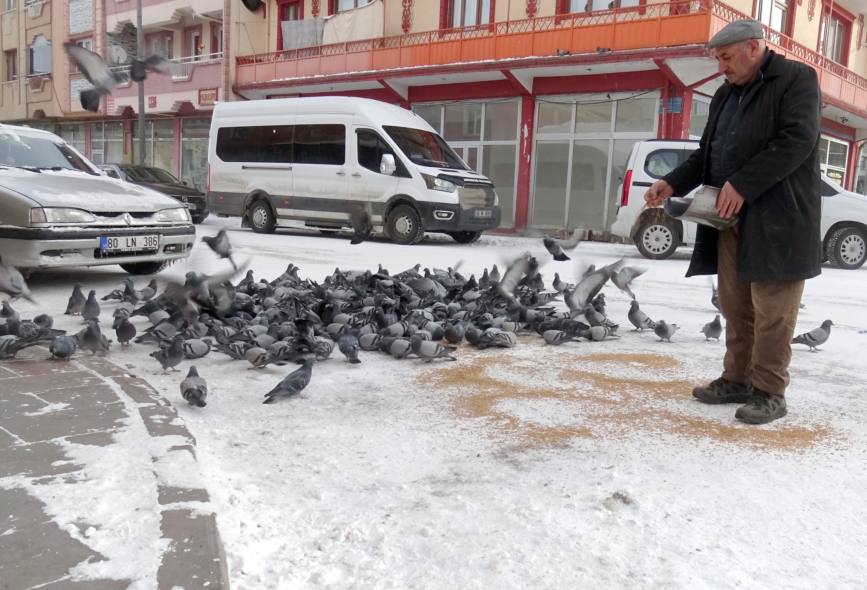 Vatandaşlar araçlarını soğuktan korumak için battaniye ve brandayla örttü, yaban hayvanları için doğaya yem ile ekmek bırakıldı.