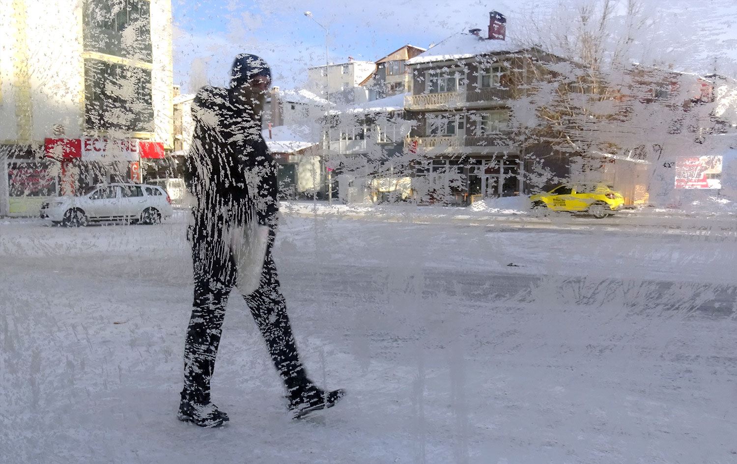 Termometrelerin gece sıfırın altında 23 dereceyi gösterdiği kentte, araçların camları dondu, bina çatılarında ve şadırvanlarda buz sarkıtları oluştu.