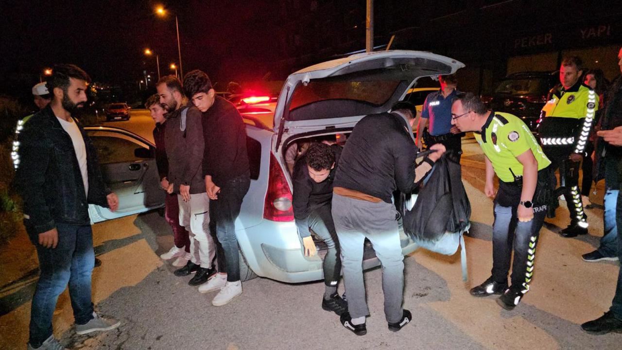Sürücü ile 2 kişi yaya olarak kaçarken, otomobilde balık istifi şeklinde kadın ve çocukların da olduğu Suriye, Filistin ve Irak uyruklu 14 kaçak göçmen yakalandı, 1 lastik bot ele geçirildi.