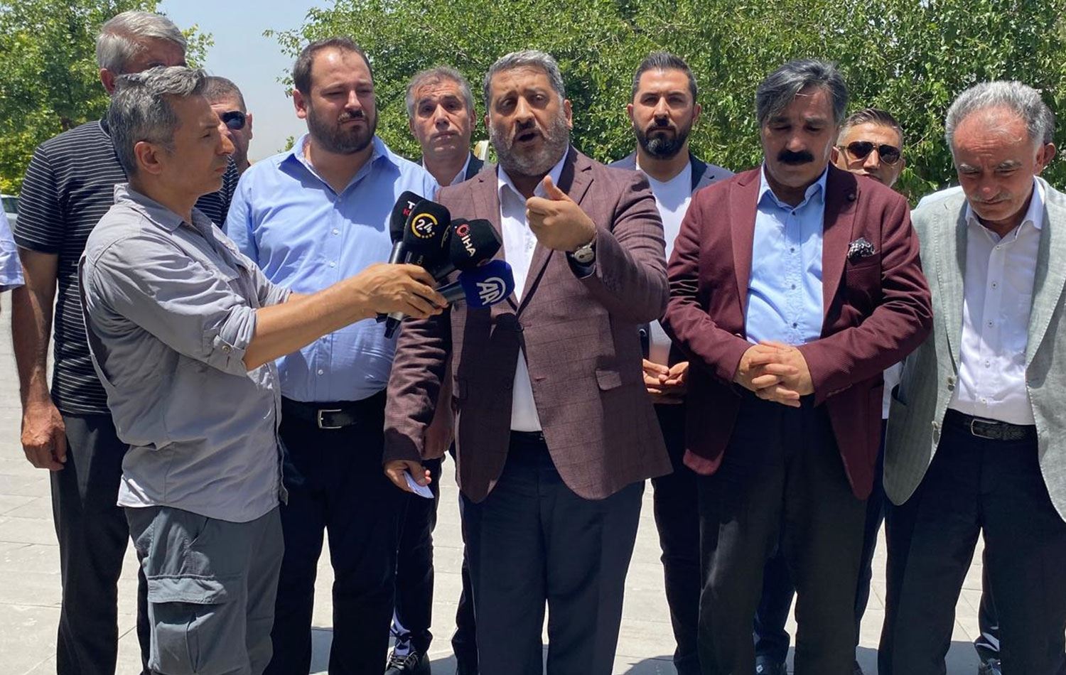 AK Parti Diyarbakır İl Başkanı Mehmet Raşit Ocak (ortada), Çınar Kaymakamlığı bahçesinde Çınar ve Mardin Mazıdağı ilçelerindeki kırsal mahallelerde çıkan yangınlara ilşkin açıklamada bulundu. / AA