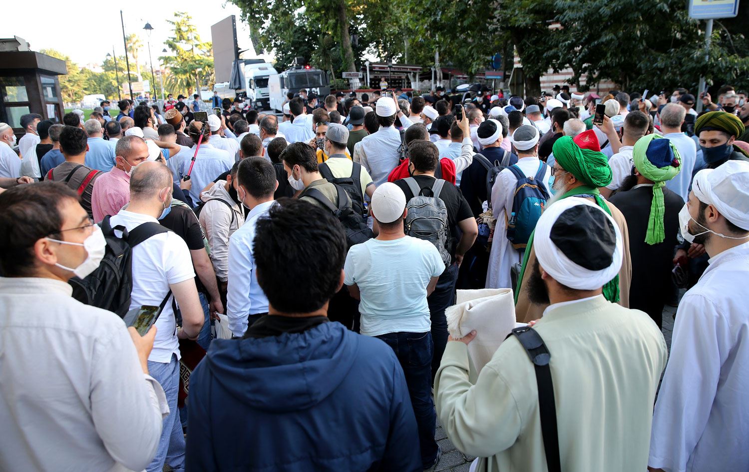 Çatladıkapı girişinden giden halk ise burada kurulan çadırda görevlilerce karşılanıyor. Görevliler, ellerine dezenfektan sıktıktan sonra halka maske ve tek kullanımlık seccade veriyor. İstanbul Büyükşehir Belediyesinin mobil büfesinden de halka çay ve simit ikramı yapılıyor.