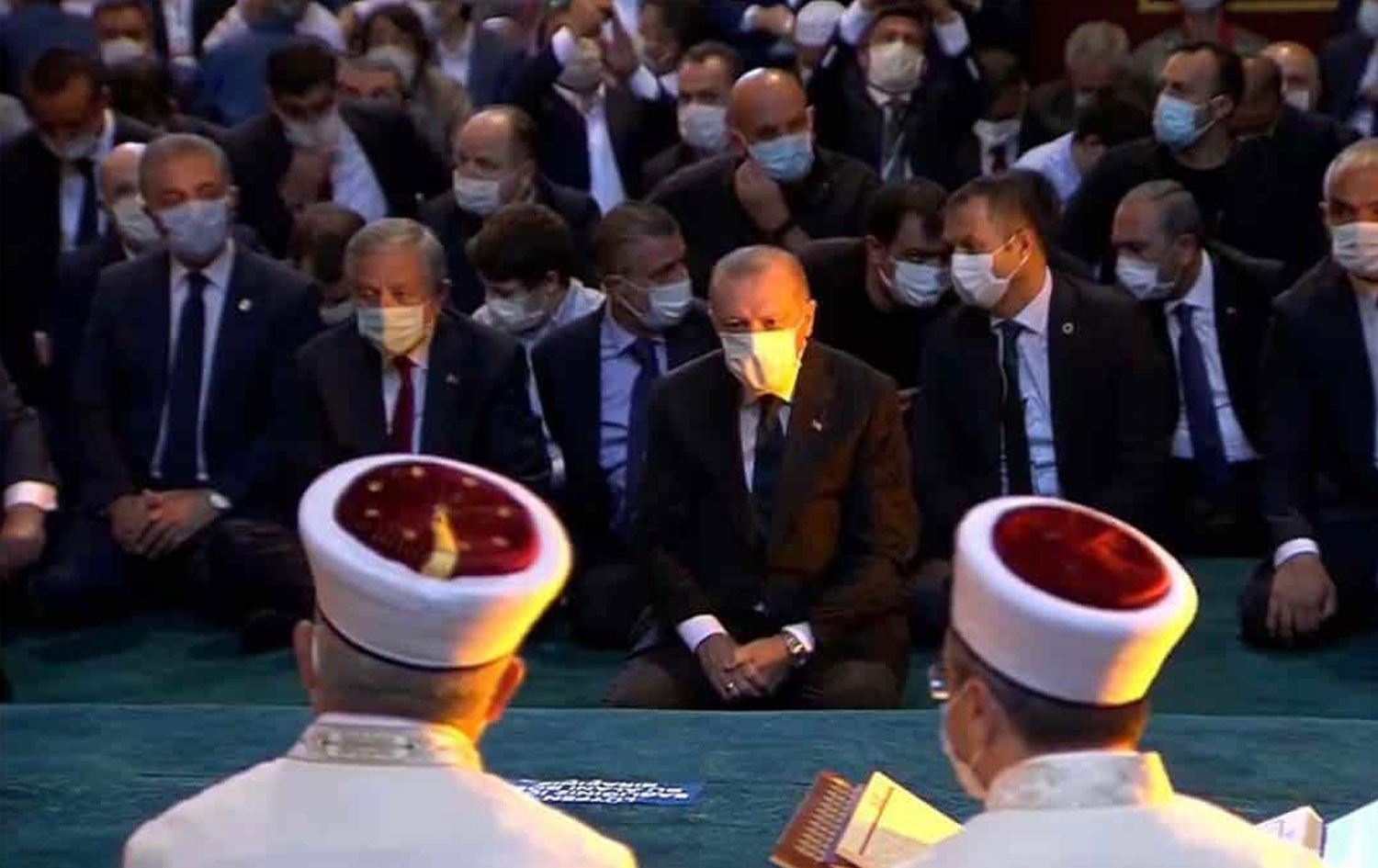 Recep Tayyip Erdoğan, namaza başlanmadan önce Ayasofya’da Kuran okudu.