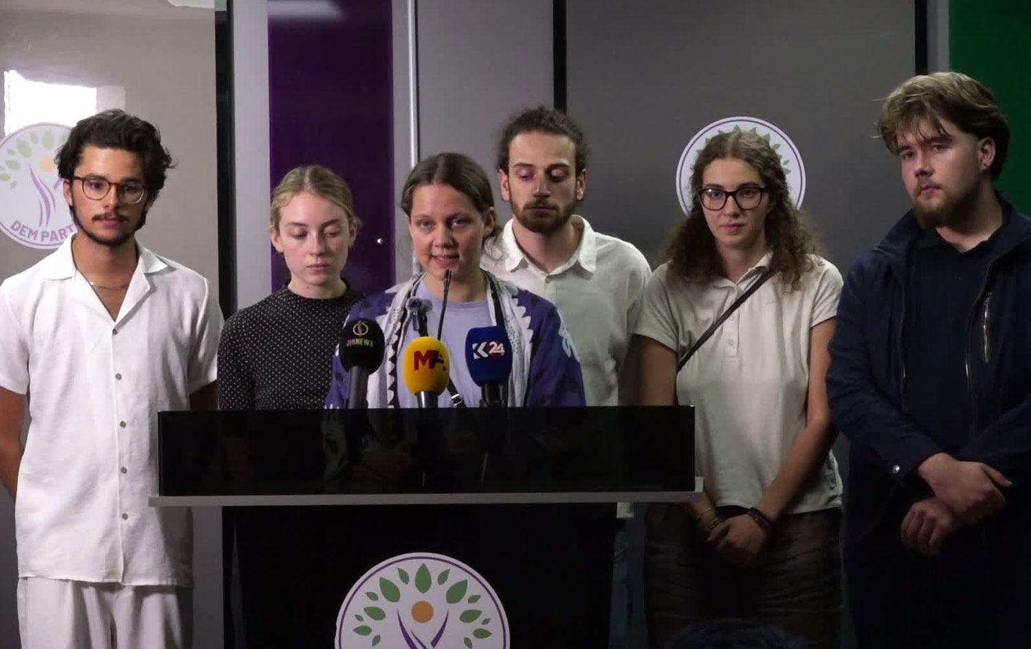 "Bizler, İtalya, Almanya ve Fransa’dan gençlerden oluşan, alternatif bir yaşam arayışında örgütlenmiş 'Özgürlükte Israr' heyetiyiz. Gerçek demokrasiye, halkların kardeşliğine ve doğayla uyum içinde olan bir topluma inanıyoruz. 'Özgürlükte Israr' heyetinin enternasyonel gençliği olarak Sayın Abdullah Öcalan’ın derhal fiziki özgürlüğünü talep eden 'Öcalan’la görüşmek istiyoruz' isimli uluslararası kampanyaya katılıyoruz.