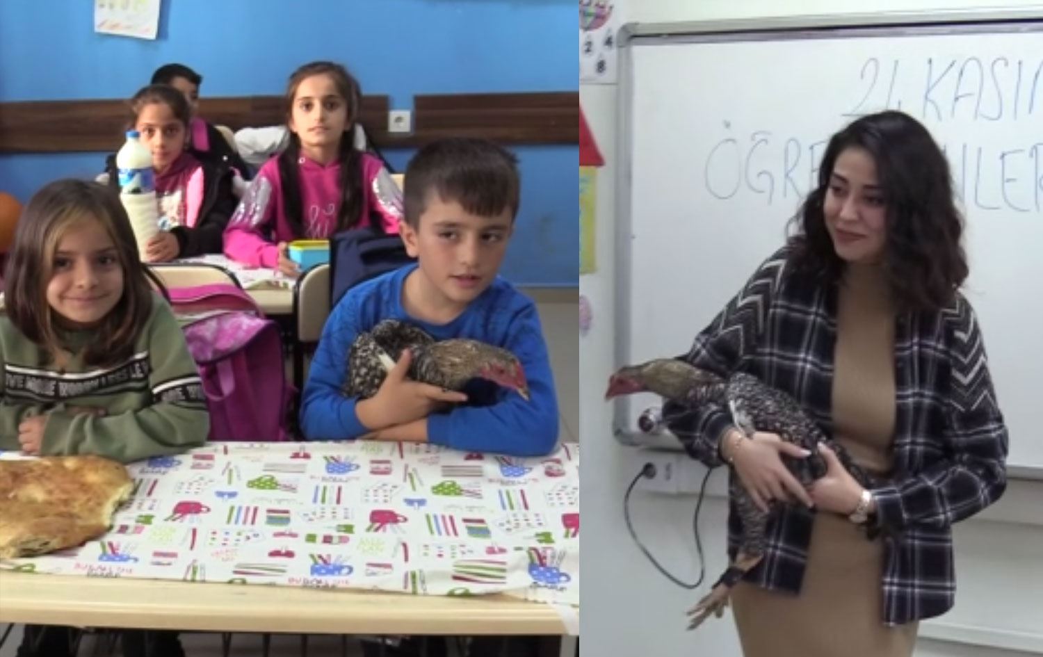 Haber Merkezi – Batman’ın merkeze bağlı Çevrimova köyünde öğrenciler öğretmenlerine hediyeler getirirken bir öğrenci bir tavuk hediye etti.