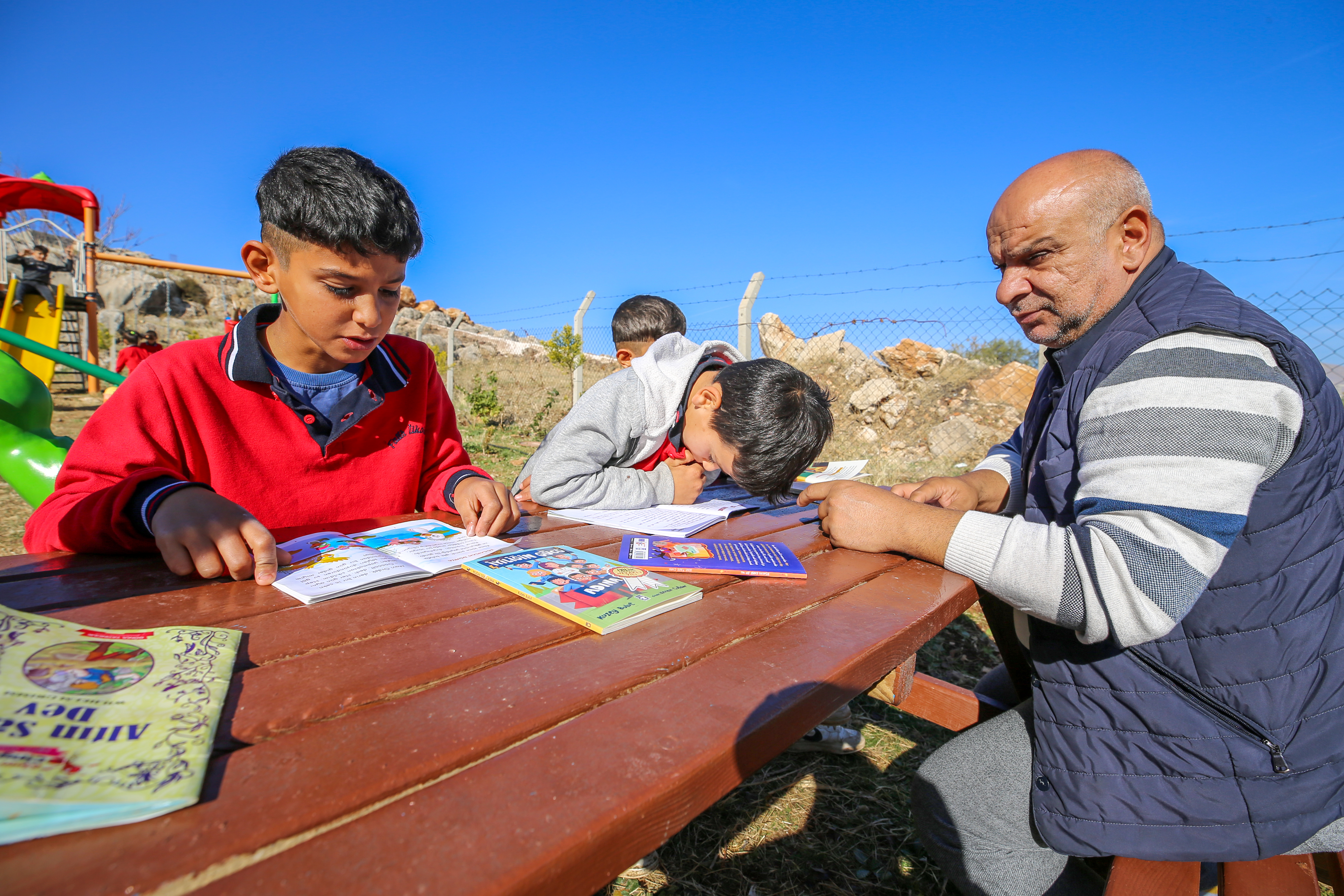 Göreve başladığında tadilat ihtiyacı bulunan okulda, velilerin desteğiyle boya, onarım ve bahçe düzenlemesi çalışmalarını yürüten 45 yaşındaki 3 çocuk babası Tümay, okulun giriş bölümünü, oturma alanlarını ve oyun parkını yeniledi.