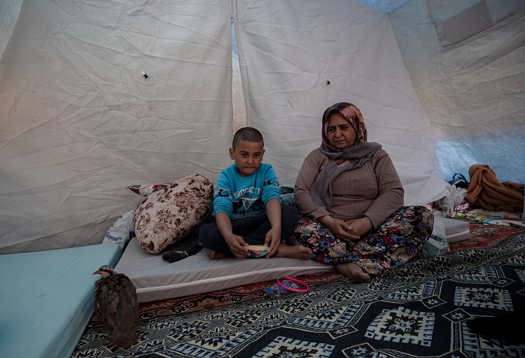 Depremlerde Dulkadiroğlu ilçesinin Kayabaşı Mahallesi'ndeki evleri ağır hasar alan Aksu ailesi, geçici barınma merkezlerinden Vali Saim Çotur Stadı'ndaki çadır kente yerleştirildi.