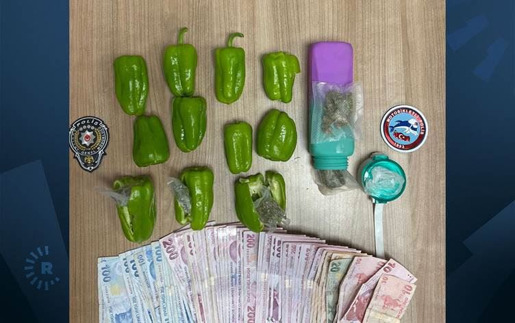 Şüphe üzerine kontrol noktasında durdurulan araçta yapılan aramada, 3 dolmalık biber ve 1 su matarasının içine gizlenmiş 5 parça halinde satışa hazır çeşitli türlerde 32 gram uyuşturucu madde ele geçirildi.