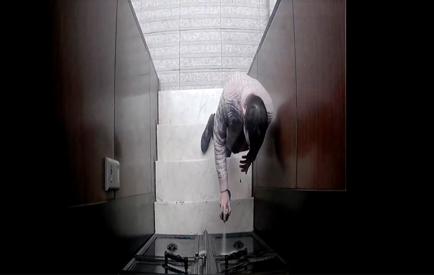 Görüntülerde Mehmet Beyazıt kapının önüne birkaç kere gidip gelerek aynı eylemi tekrar tekrar gerçekleştiriyor.