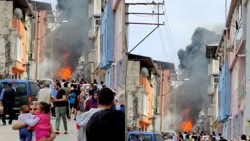 Tek motorlu uçak, Bursa'nın Osmangazi ilçesine bağlı Bağlarbaşı Mahallesi Sarıgül Sokak'ta evlerin arasına düşerek yanmaya başladı.