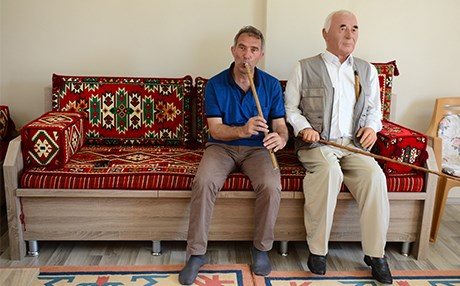 Balmumu heykelinde babasının kıyafetlerinin yer aldığını dile getiren Kuğu, heykeldeki ayakkabı, ceket, baston ve kavalın babasına ait olduğunu söyledi.