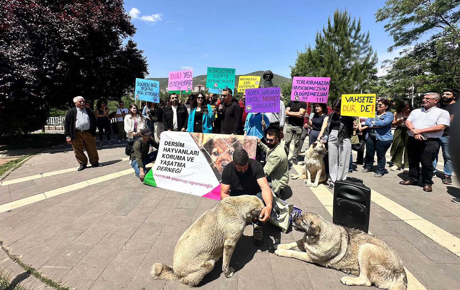 Son günlerde sokak köpeklerinin toplatılıp belediye barınaklarında internet üzerinden sahiplendirilmeye çalışılacağı, sahiplendirilen köpeklerin çip takılarak takip edileceği ve 30 gün içinde sahiplendirilemeyen köpeklerin ise enjeksiyon ile uyutulacağına dair yasa tasarısının Meclis’in gündemine geleceği ileri sürülmesine Dersim’de, Dersim Hayvanları Koruma Derneği (DERHAYKO) çağrısıyla bir çok hayvansever bir araya gelerek tepki gösterdi.