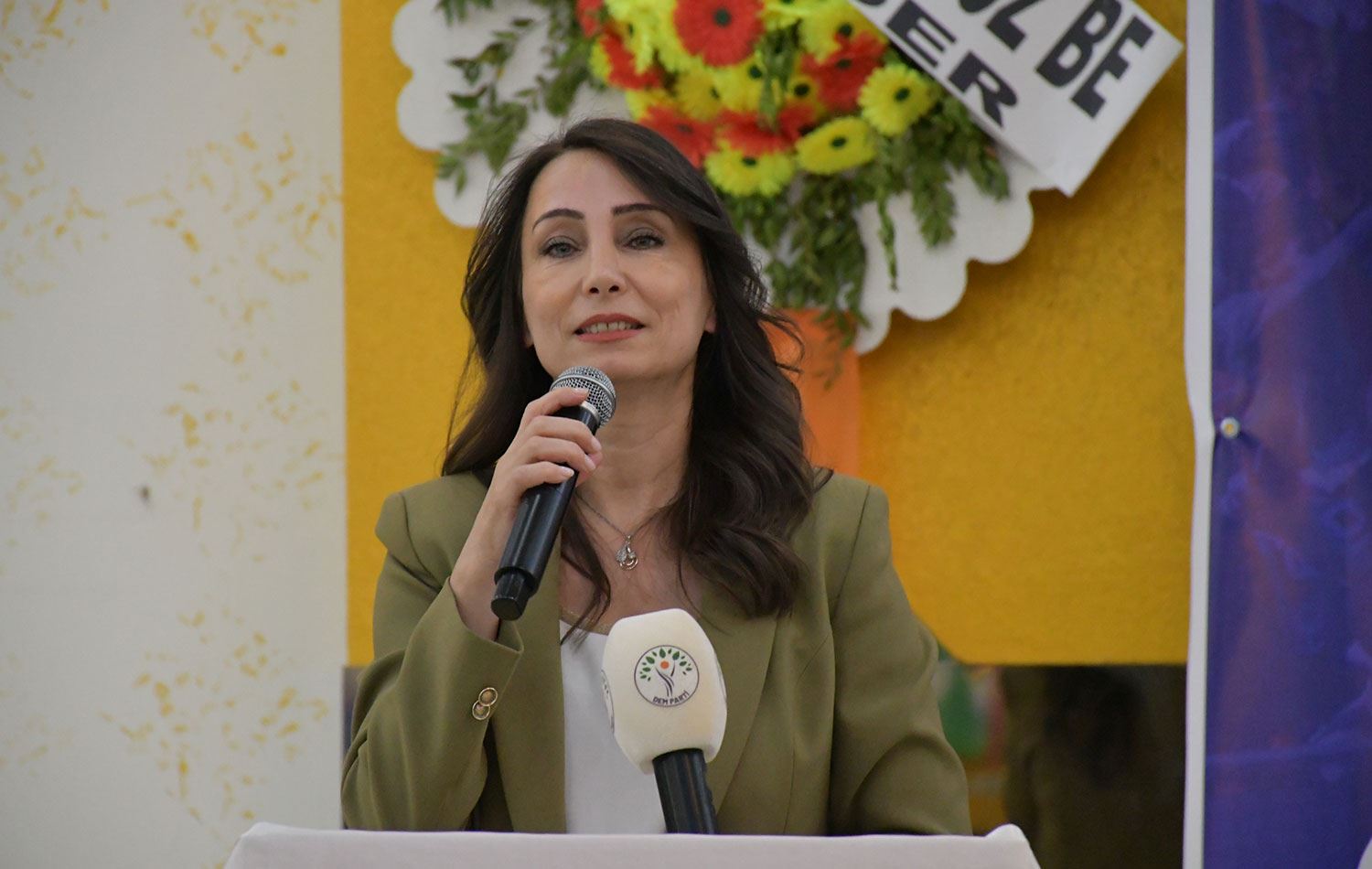 “Bu dönemde özellikle barışın tesis edilmesi ve Türkiye'nin demokratikleşmesi için çok önemli adımların atıldığı günlerden geçiyoruz. Bizler barış istiyoruz. DEM Parti olarak diyoruz ki Türkiye tercihini barıştan ve demokrasiden yana yapmalıdır. O nedenle temel sloganımız barış ve demokrasidir."