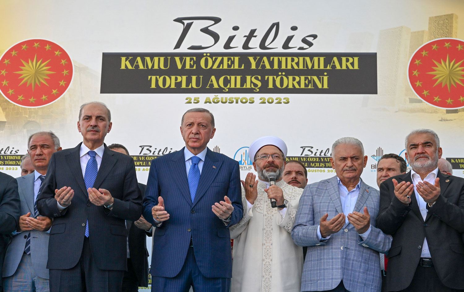 Erdoğan devamında "Nasıl vatandaşlarımız arasında ayrım yapmıyorsak, illerimiz, bölgelerimiz arasında da asla ayrım yapmayız. İstanbul'a, Ankara'ya, İzmir'e hizmet götürürken, Muş'u, Bitlis'i, Şırnak'ı ihmal etmiyoruz. Batıda yaşayan vatandaşlarımız hangi imkanlardan faydalanıyorsa buradaki kardeşlerimizin de aynısına sahip olması için çalışıyoruz. Bu anlayışla son 21 yılda Bitlis'e toplam 40 milyar lira tutarında kamu yatırımı yaptık" diye konuştu.