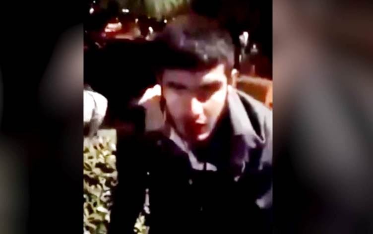Saldırıya uğrayan gencin videoda bir şeyler söylemek istediği görülüyor ancak ne dediği anlaşılmıyor. Genç konuşmaya başlayında etrafında toplanan kalabalık saldırmaya başlıyor.