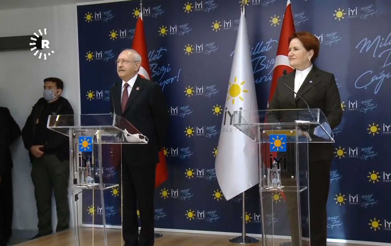 Ankara (Rûdaw) - CHP lideri Kemal Kılıçdaroğlu, İYİ Parti lideri Meral Akşener’le düzenlediği ortak basın toplantısında, "Türkiye yönetilmiyor, Türkiye savruluyor. Cumhur İttifakı'nın büyük ortağı küçük ortağı tarafından esir alınmış" dedi. Akşener de muhalefetin bir bütünen erken seçim istediğini söyledi.