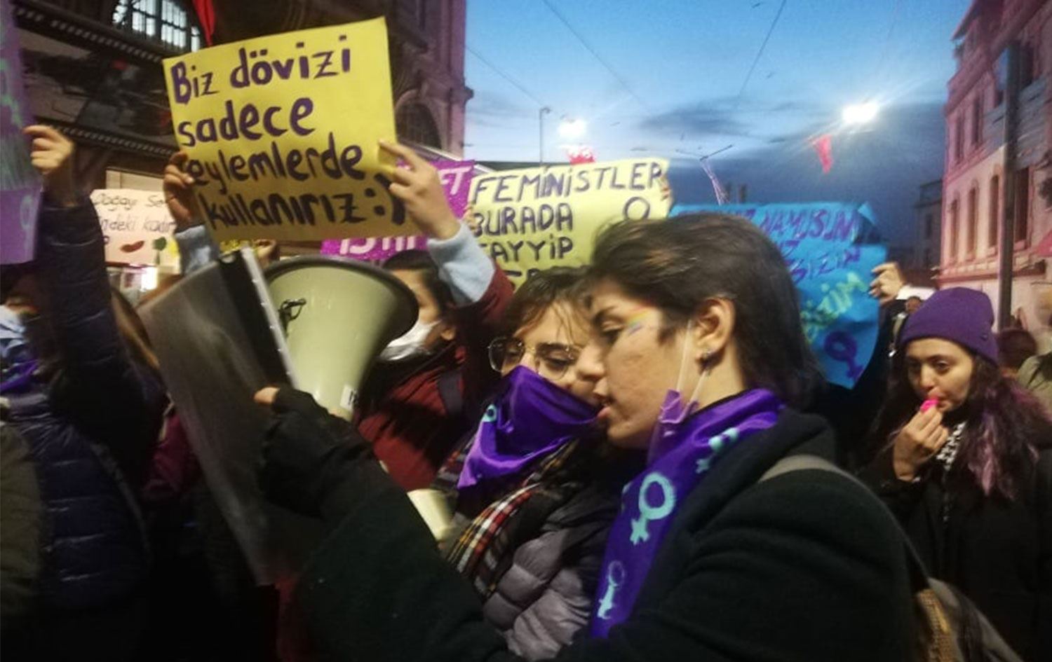 Saat 19.30'da Tünel Meydanı'nda başlayan eylemde Galatasaray Meydanı'na yürümek isteyen kadınlar, polis tarafından engellendi.