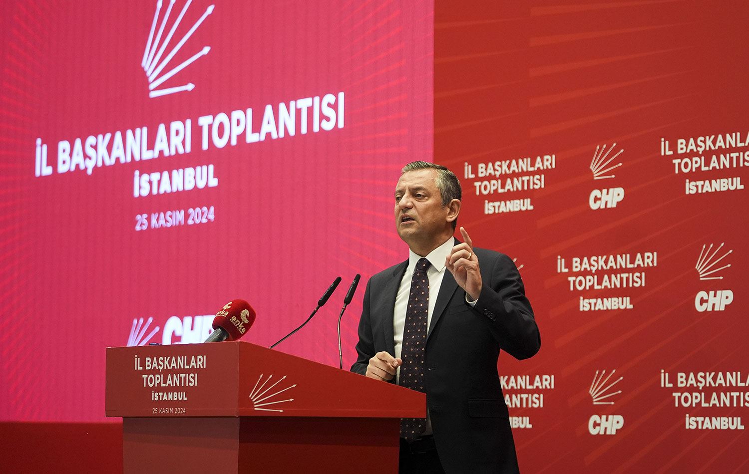 CHP Genel Başkanı Özgür Özel, Avcılar'da bir otelde düzenlenen CHP İl Başkanları Toplantısı'nda konuştu. / Foto: AA
