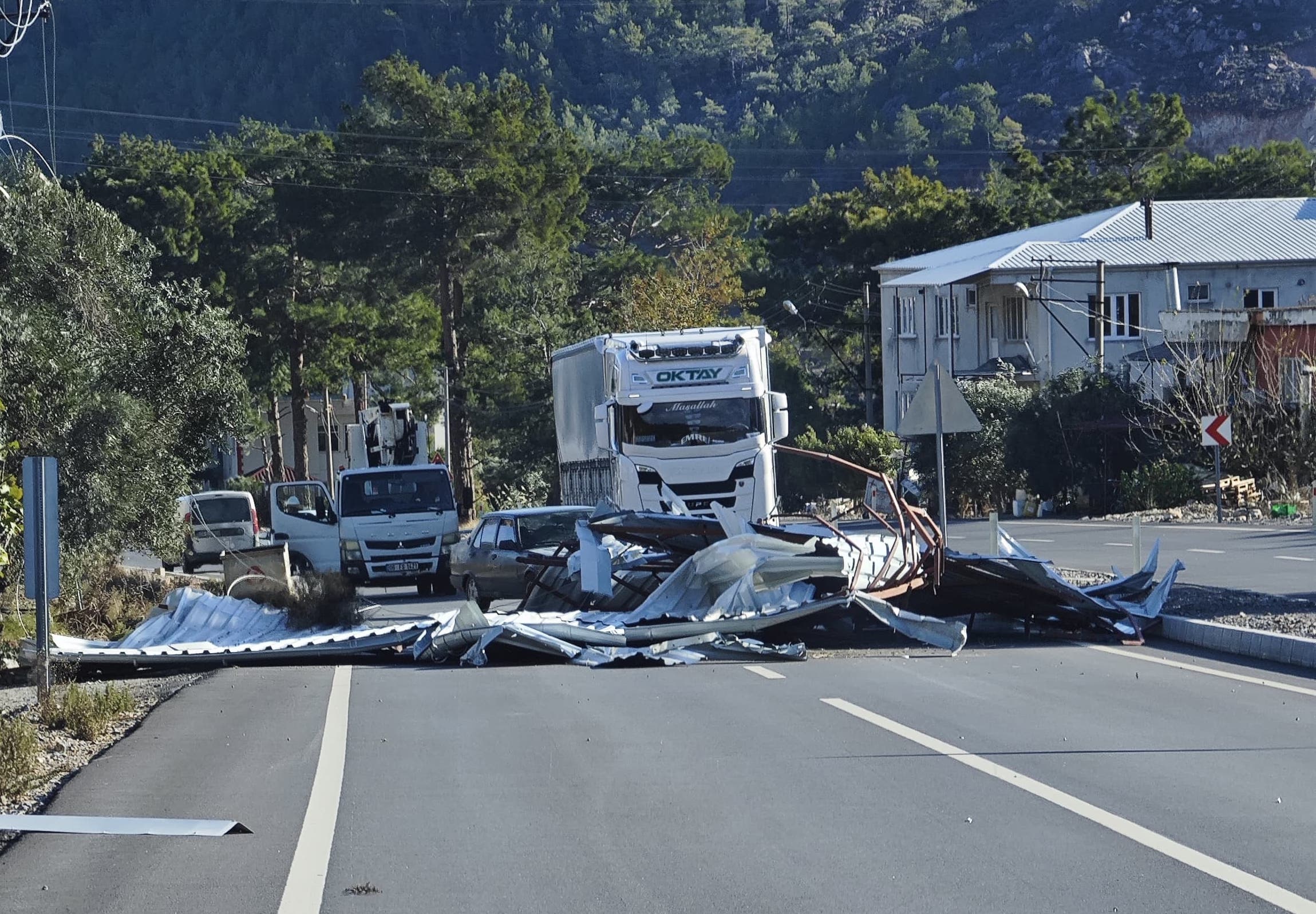 Bozyazı ilçesinde de Tekmen Mahallesi'nde bir iş yerinin çatısı, Antalya-Mersin kara yolunun batı istikametine düştü.