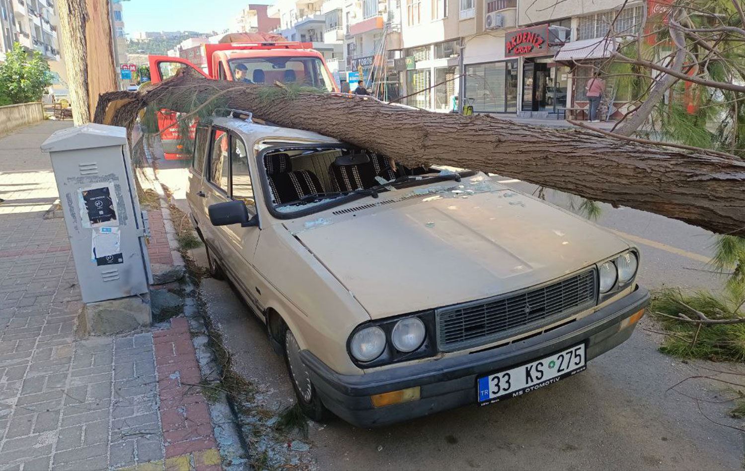Kent genelinde etkisini sürdüren şiddetli rüzgar nedeniyle Silifke ilçesinde bağlı Göksu ve Gazi mahallelerinde devrilen ağaçlar nedeniyle 3 otomobilde hasar oluştu.