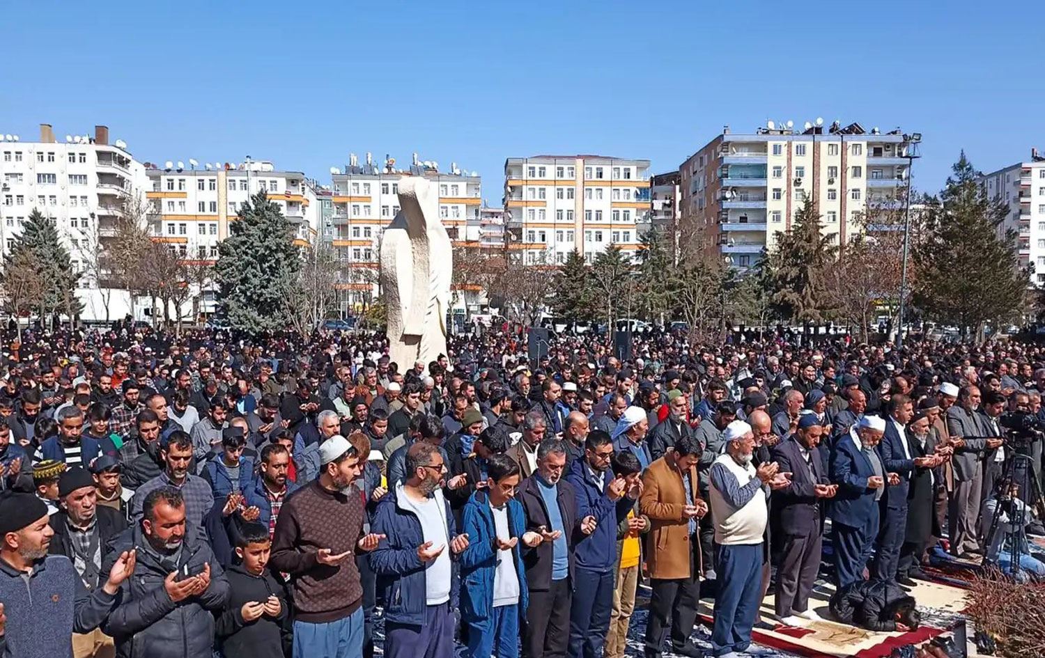 Diyarbakır'ın merkez Kayapınar ilçesindeki 15 Temmuz Şehitler Parkı'nda, Alimler ve Medreseler Birliği (İttihad-ul Ulema) ile Peygamber Sevdalıları Platformu öncülüğünde bir araya gelen çok sayıda kişi, merkez üssü Maraş'ın Pazarcık ve Elbistan ilçeleri olan, 6 Şubat'ta yaşanan, 11 ilin etkilendiği depremlerde yaşamını yitirenler için gıyabi cenaze namazı kıldı, dua etti.