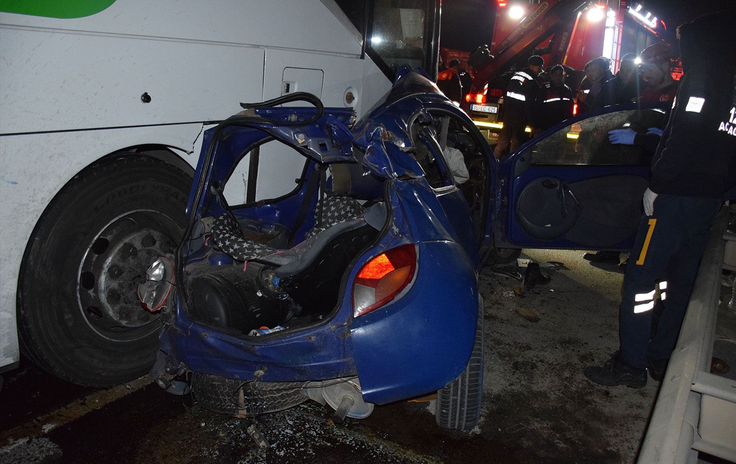 H.A. (55) yönetimindeki Kamil Koç firmasına ait 34 EHC 916 plakalı yolcu otobüsü İzmir-Ankara kara yolu Halilbeyli Kavşağı'nda Abdullah Demir'in (32) kullandığı 48 BY 621 plakalı otomobille çarpıştı.