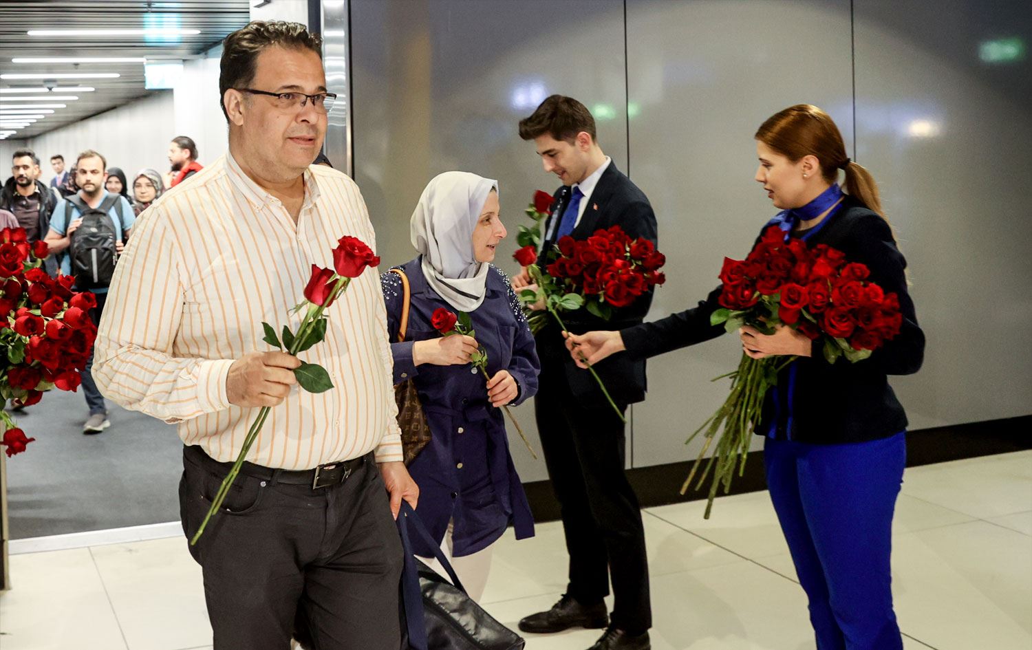 Türkiye vatandaşları, İstanbul Havalimanı'nda çiçeklerle karşılandı.