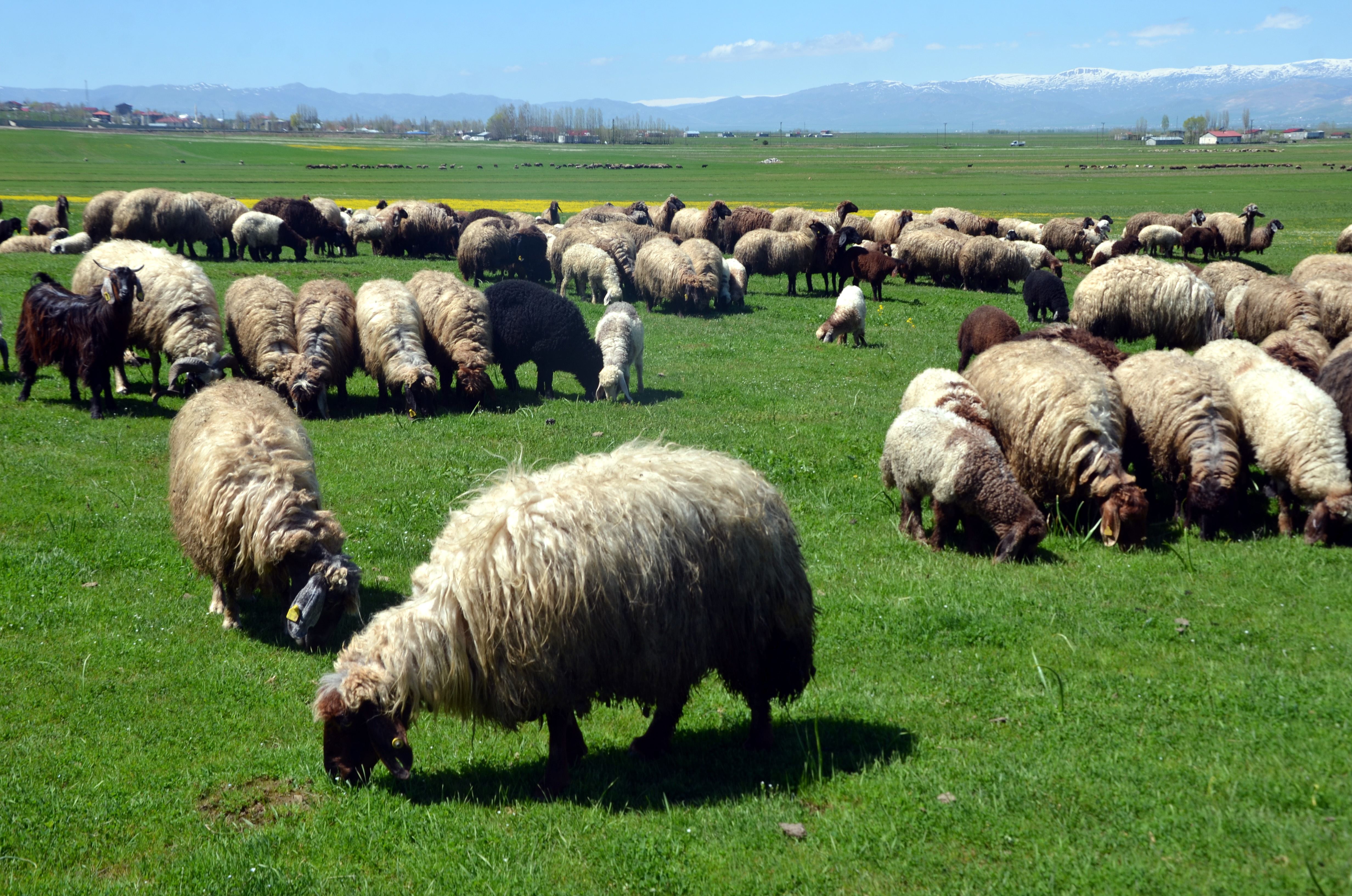 Türkiye'de küçükbaş hayvancılığın önemli merkezlerinden Muş'ta, kar örtüsünün kalkmasıyla yeşeren meralar küçükbaş hayvan sürüleriyle renklendi.