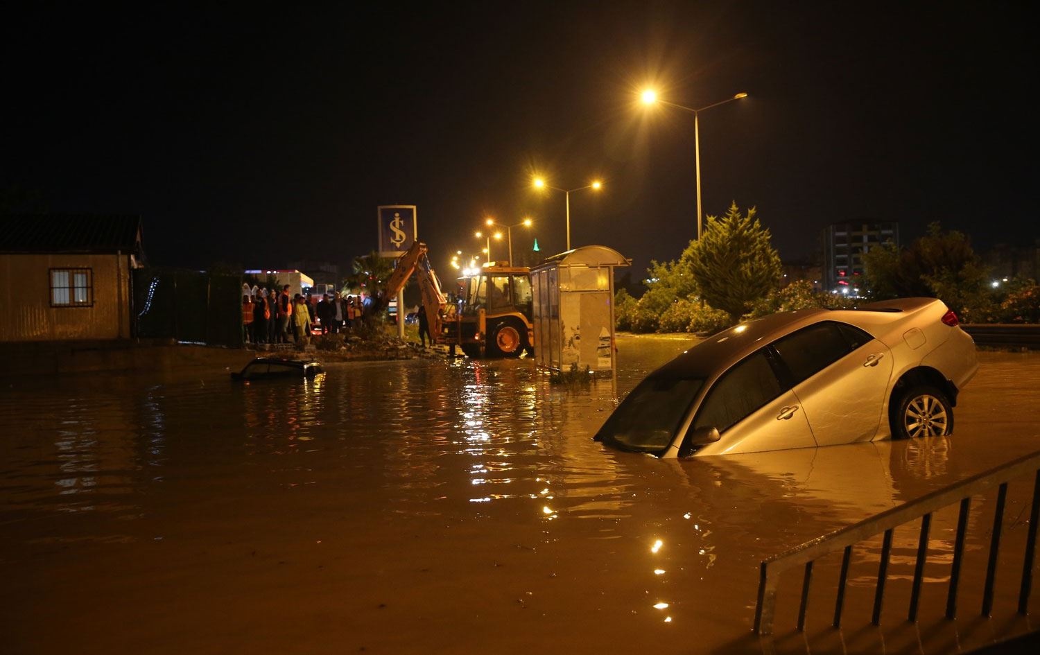 Antakya-Samandağ kara yolunun Çekmece mevkiinde sağanak nedeniyle bazı araçlar suya gömüldü.
