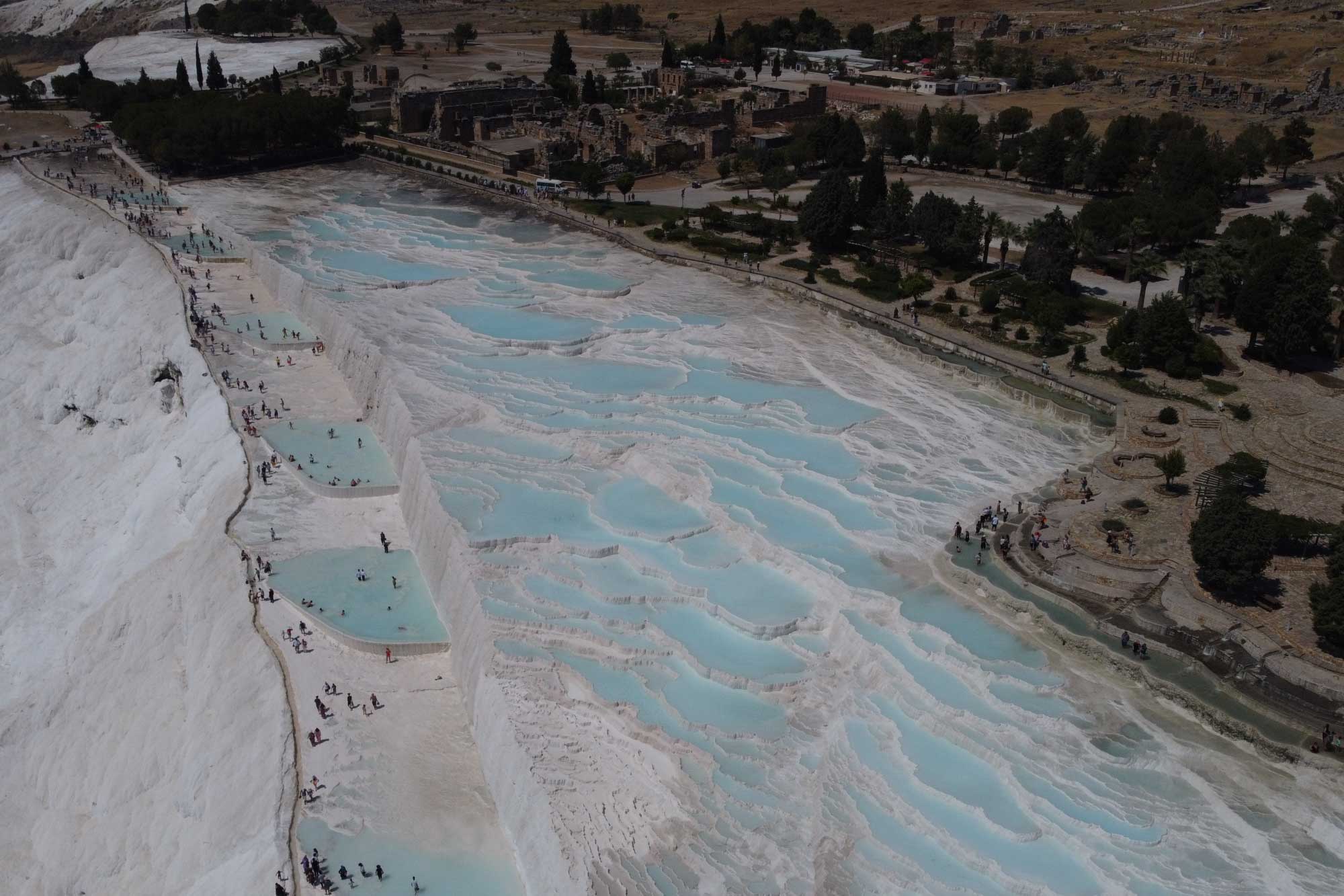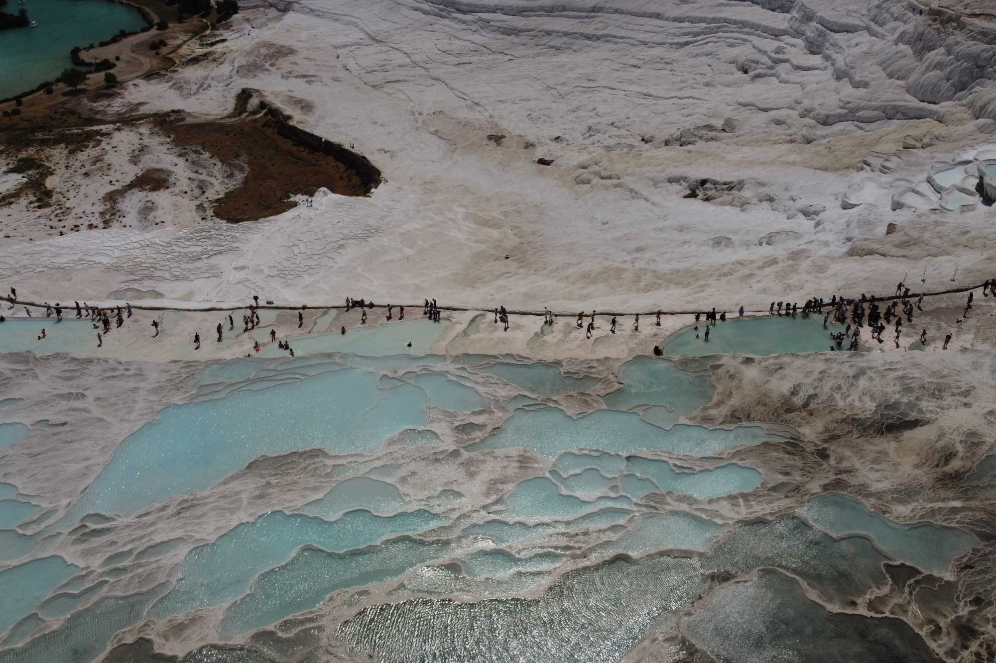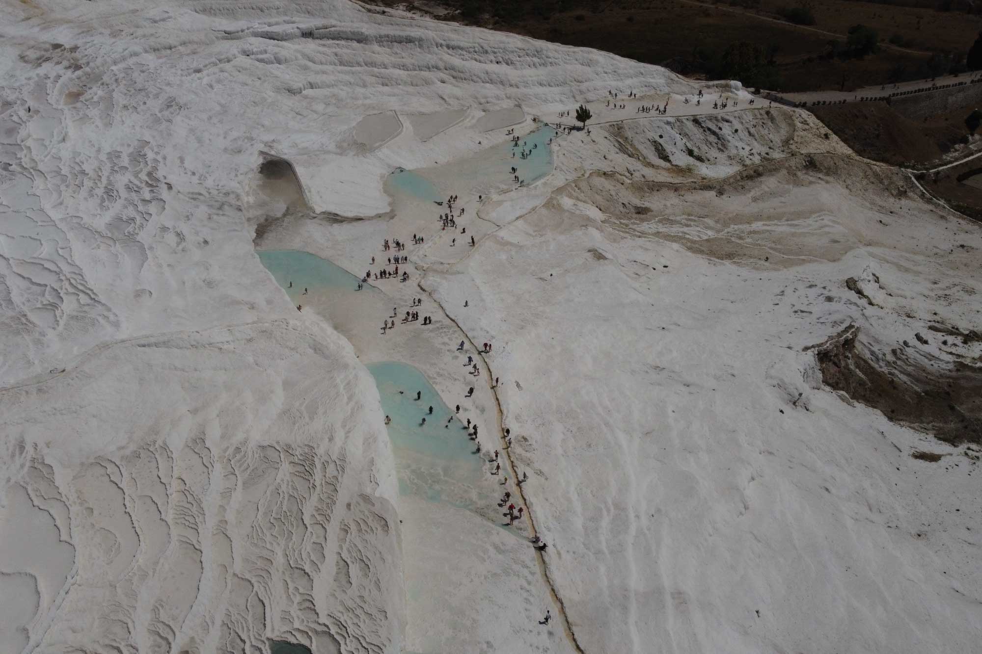 Pamukkale'yi ziyaret edenler pamuksu beyazlıktaki travertenlerde yürüdü, Hierapolis Antik Kenti'nde tarihi yolculuğa çıkıp yaz-kış sıcaklığı 36 derece olan antik havuza girmenin tadını yaşadı.