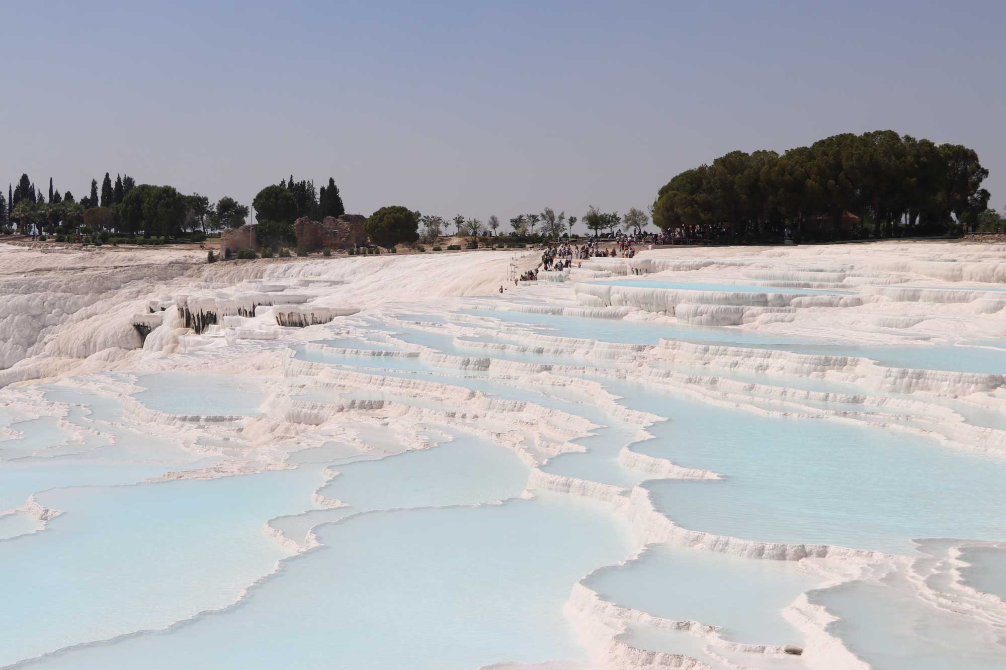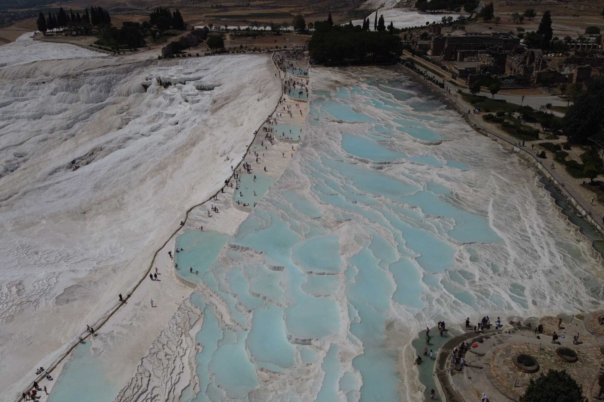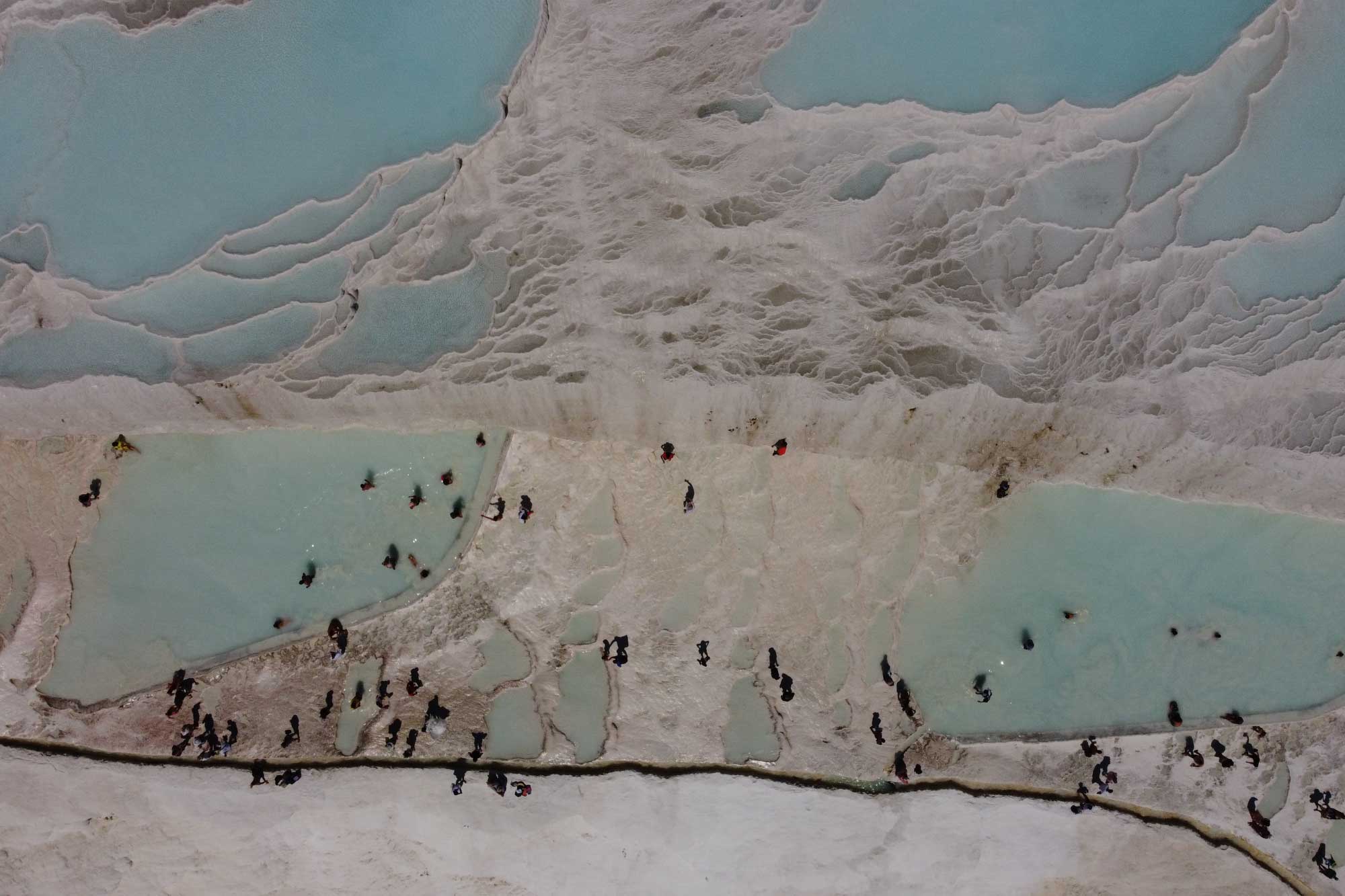 Pamukkale'yi ziyaret edenler pamuksu beyazlıktaki travertenlerde yürüdü, Hierapolis Antik Kenti'nde tarihi yolculuğa çıkıp yaz-kış sıcaklığı 36 derece olan antik havuza girmenin tadını yaşadı.