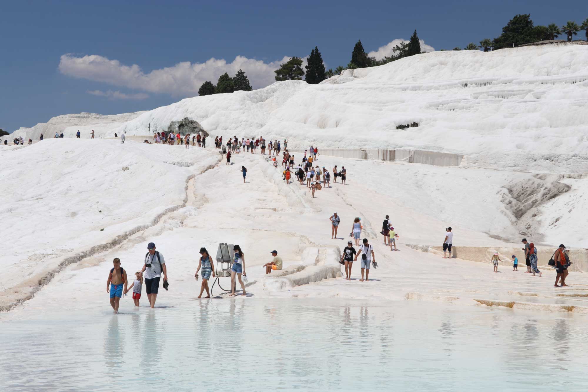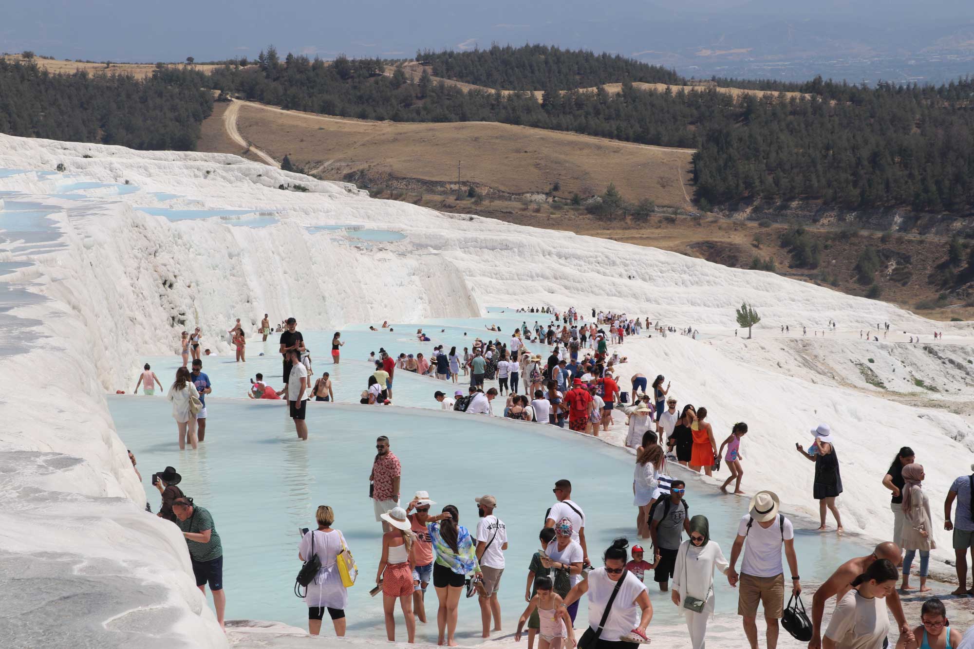 Bu yılın Ocak-Haziran dönemini geçen yıla göre yüzde 50 artışla 250 bin 158 ziyaretçiyle kapatan Pamukkale'yi 17-25 Temmuz'da 121 bin 552 kişi gezme şansı yakaladı.