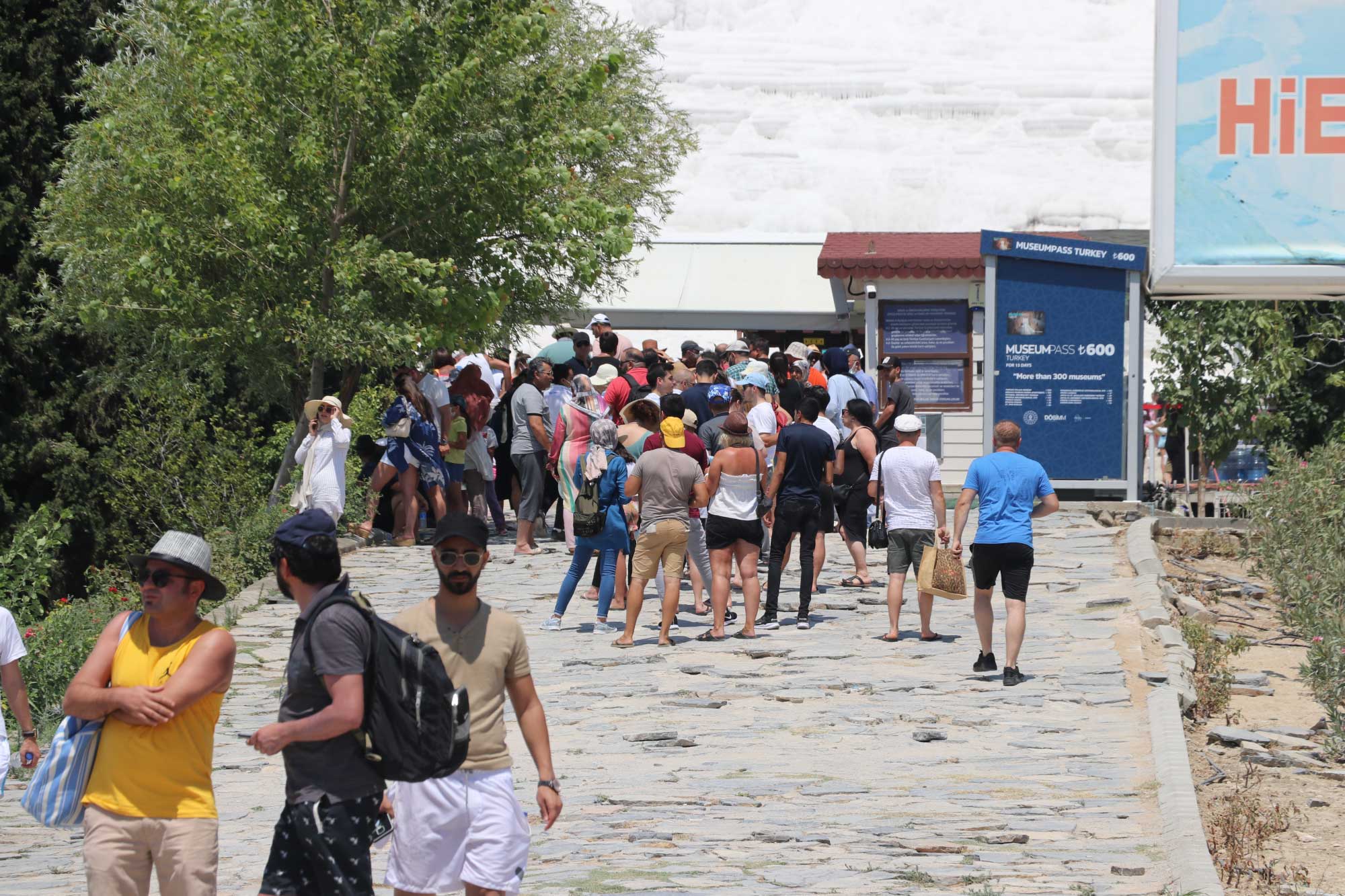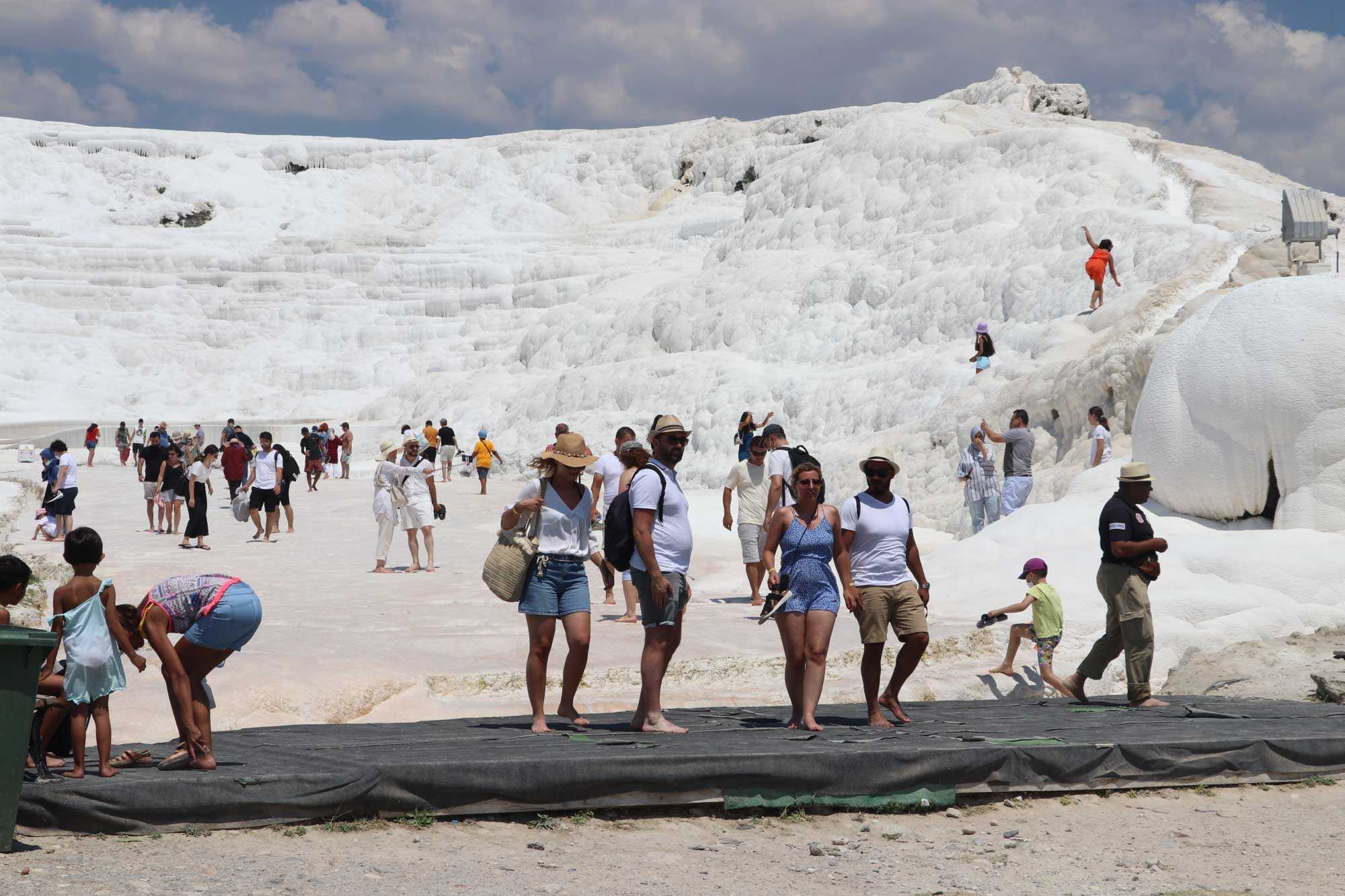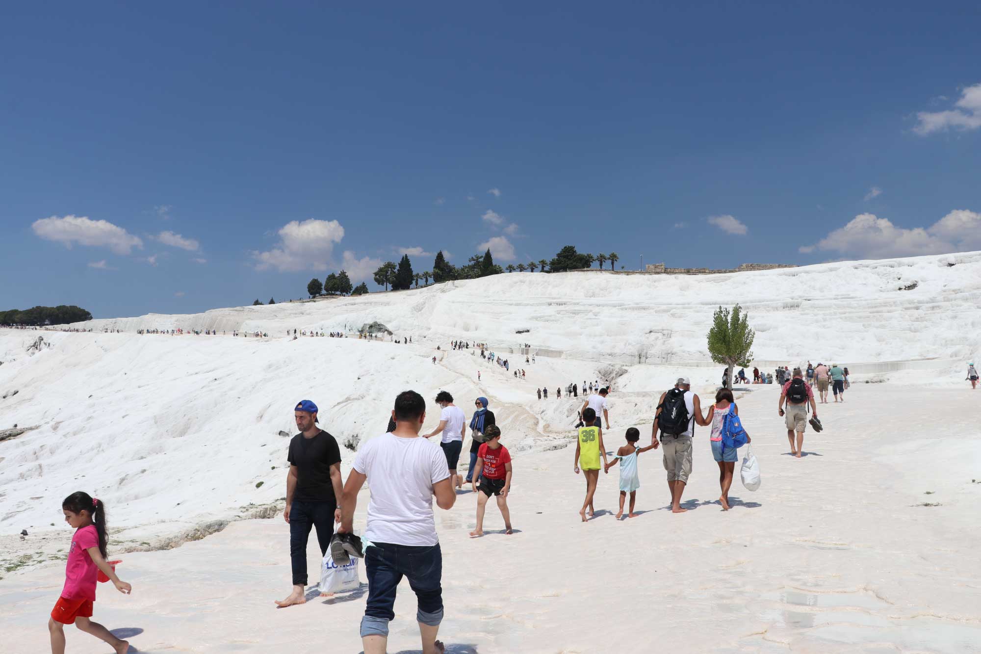 Dünyanın dört bir yanından yabancıların yanı sıra yaz ve bayram tatilini fırsat bilen yerli turistlerin de ilgi gösterdiği Pamukkale'de eski günlerindeki gibi zaman zaman adım atacak yer kalmadı.