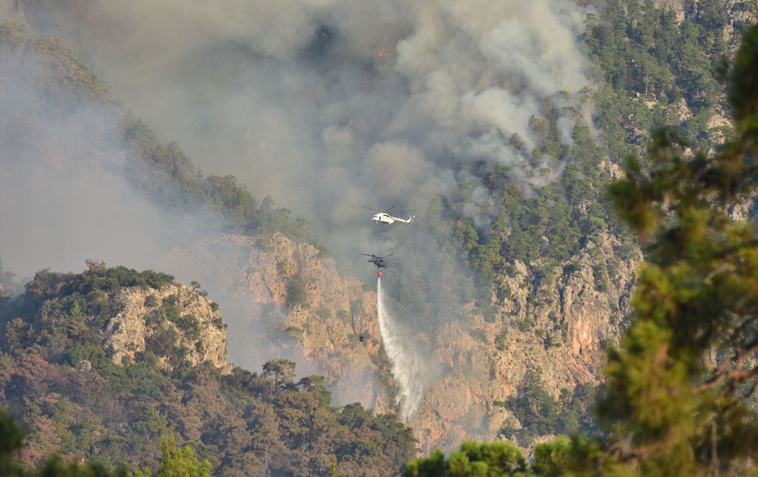 Sabahın ilk saatlerinden itibaren ise yangına çok sayıda helikopter ve uçak da müdahale etmeye başladı.