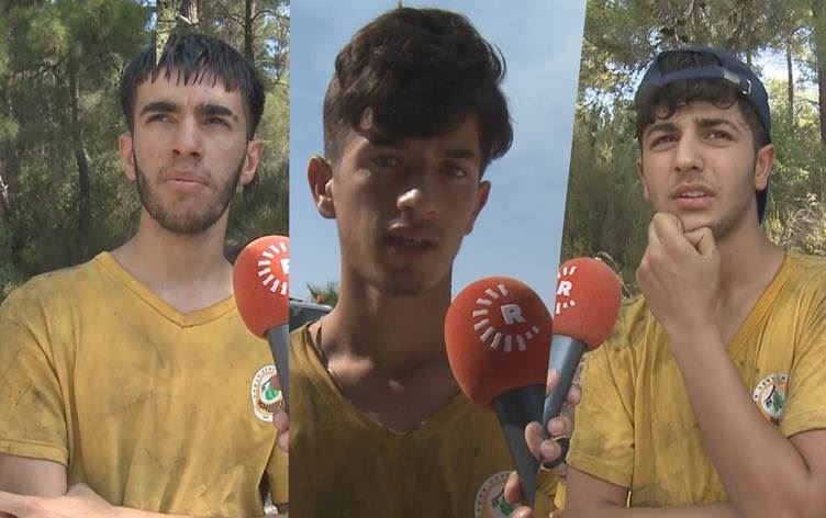 18 yaşındaki Diyarbakırlı gençler Özgür, Ahmet ve Mert de Antalya’da sözleşmeli itfaiyeci olarak yangın söndürme çalışmasına aktif olarak katılıyor.