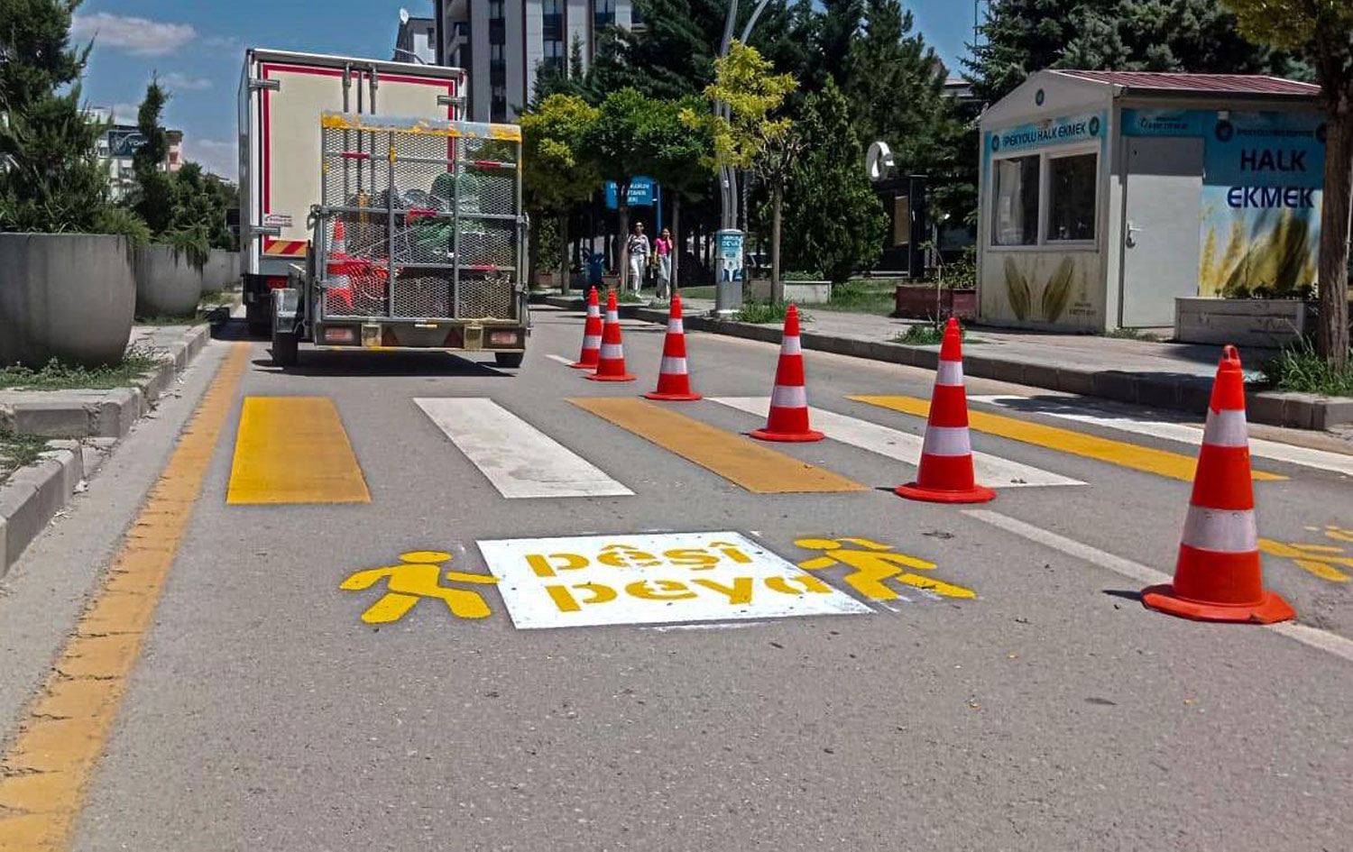 Ulaşım Dairesi Başkanlığı ekipleri, saldırıya maruz kalan Kürtçe trafik uyarı yazısını "pêşî peya/önce yaya" yazısı ile yeniden yazdı.