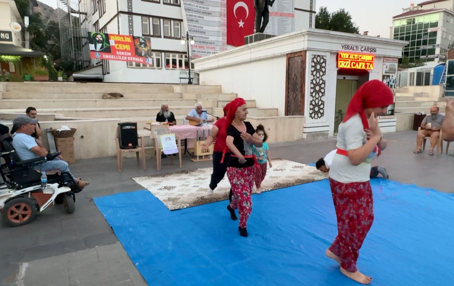 SMA hastası Masal Ağtaş’ın tedavisinin yapılması ve sağlığına kavuşması için Dersim Engelliler Derneği Yeraltı Çarşısı üstünde Alevi dedelerin duaları ve bağlamaları eşliğinde cem törenin ardından semah döndü.