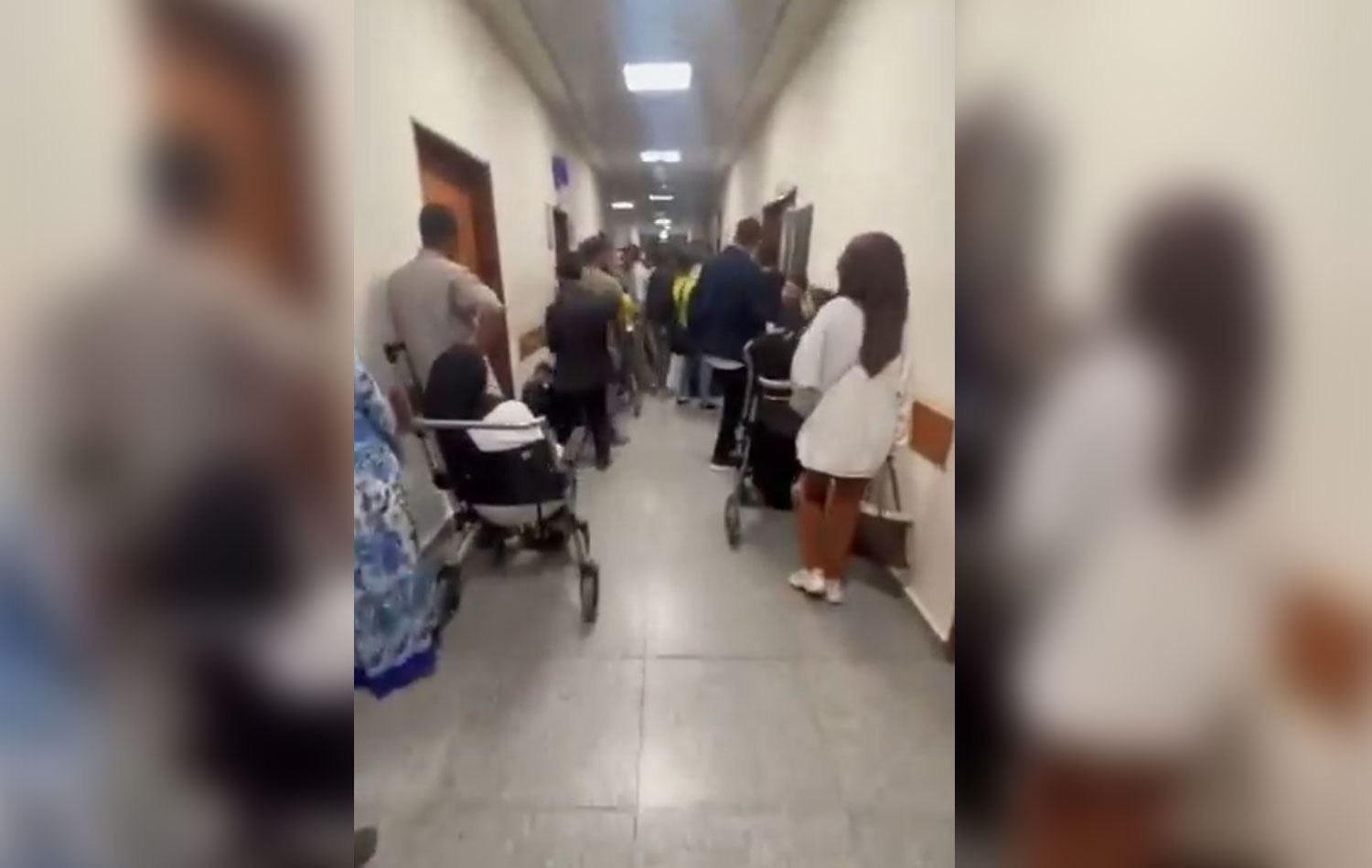 Görüntülerde Patnos Devlet Hastanesi’nde koridorlarda uzun kuyruklar oluştuğu görülüyor.