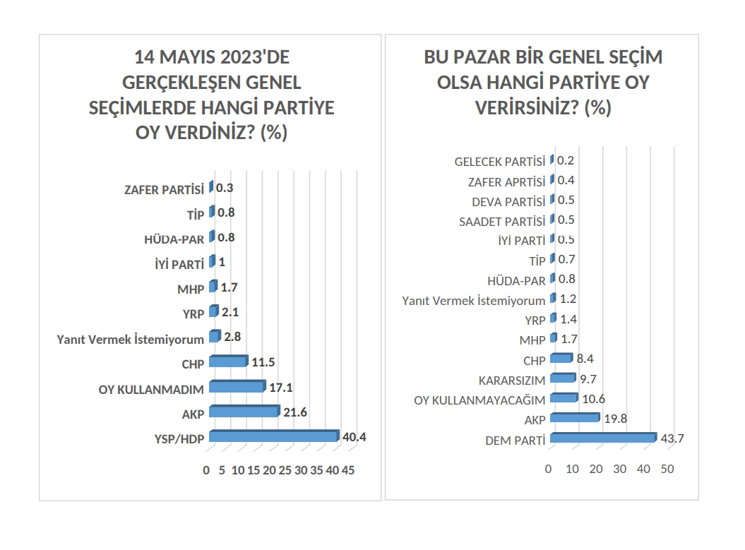 Araştırmaya göre, AK Parti ve MHP seçmenlerinde güvenlik ve istikrar temaları baskınken; CHP seçmenlerinde hukuk, adalet ve demokrasi vurgusu; Halkların Eşitlik ve Demokrasi Partisi (DEM Parti) seçmenlerinde eşitlik, diyalog ve yasal güvence beklentisi öne çıktığı vurgulandı.